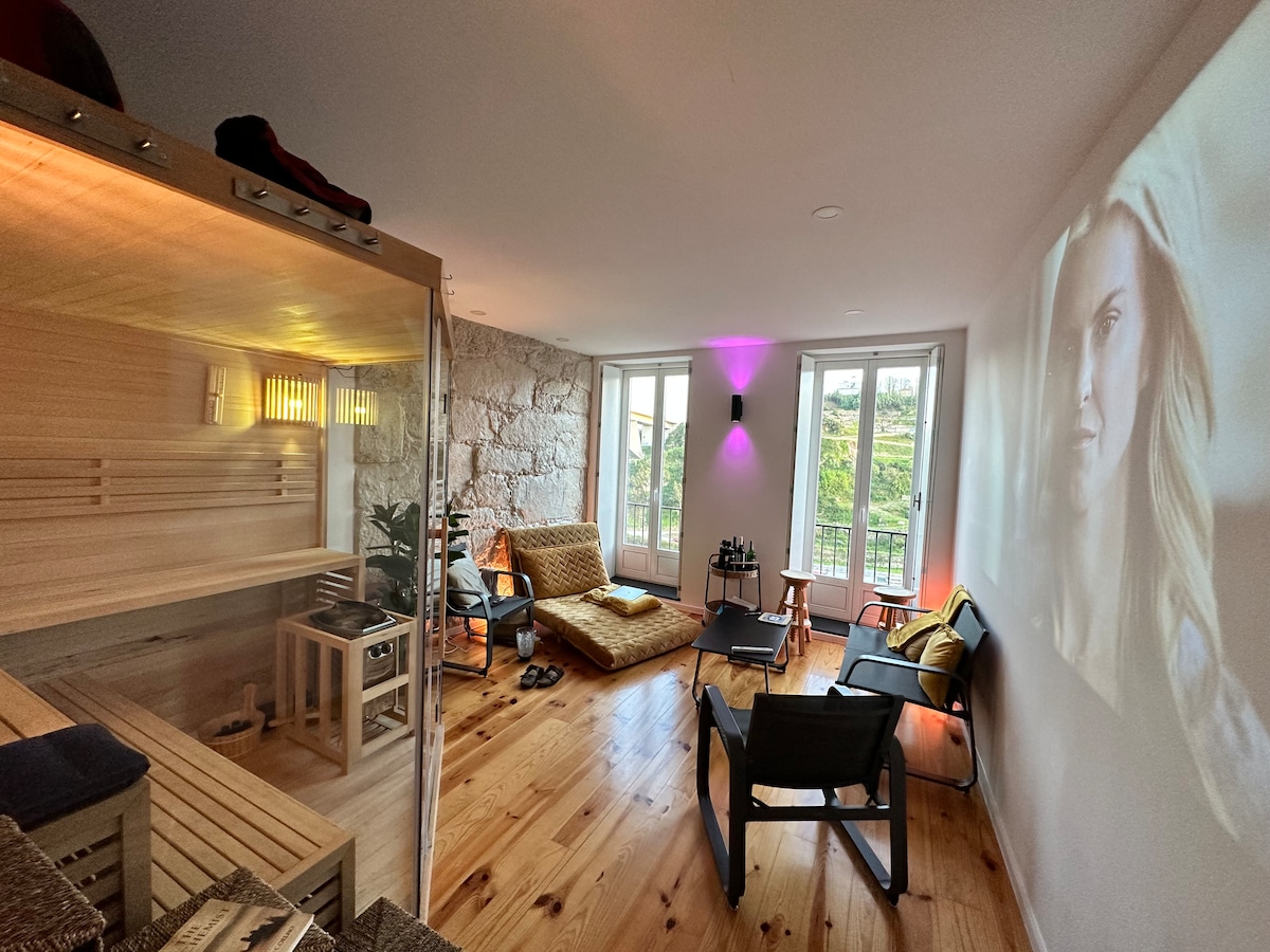 Unique accommodation with a direct view of the river Douro. Cozy and spacious with a sauna for the rainy days. Waterbed inside the sleeping room. Special Philips Hue lightning system in any room. Video projector for watching TV or YouTube. Just 5 minutes walk to Ponte Luis Bridge and also 5 minutes to the wonderful Praça dos Poveiros.