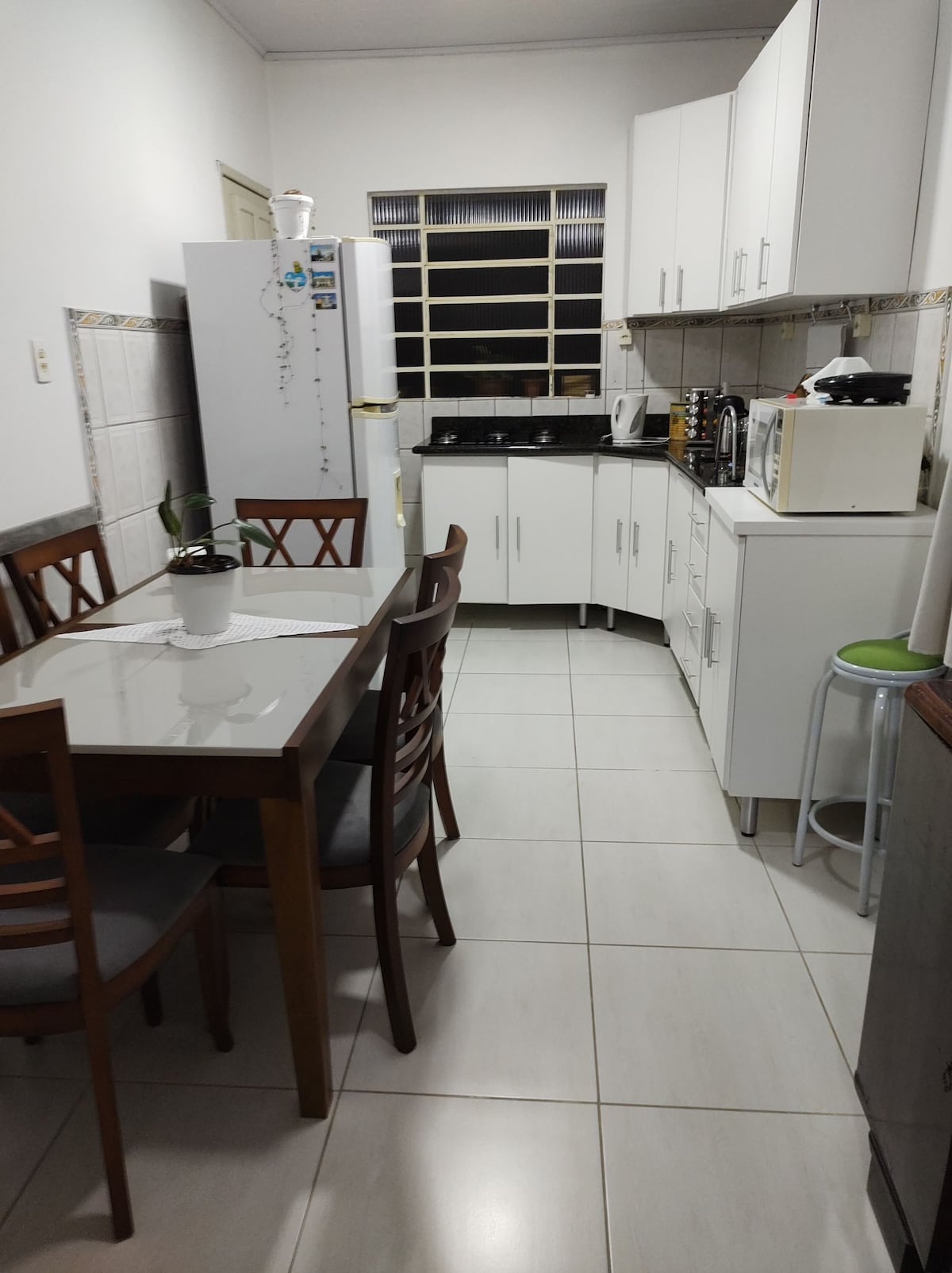 Apartamento familiar, ideal para uma estadia privativa, tranquila e com muita segurança Ar condicionado nos quartos e na sala Garagem fechada Fornecemos os produtos para que os hóspedes possam preparar seu café.
