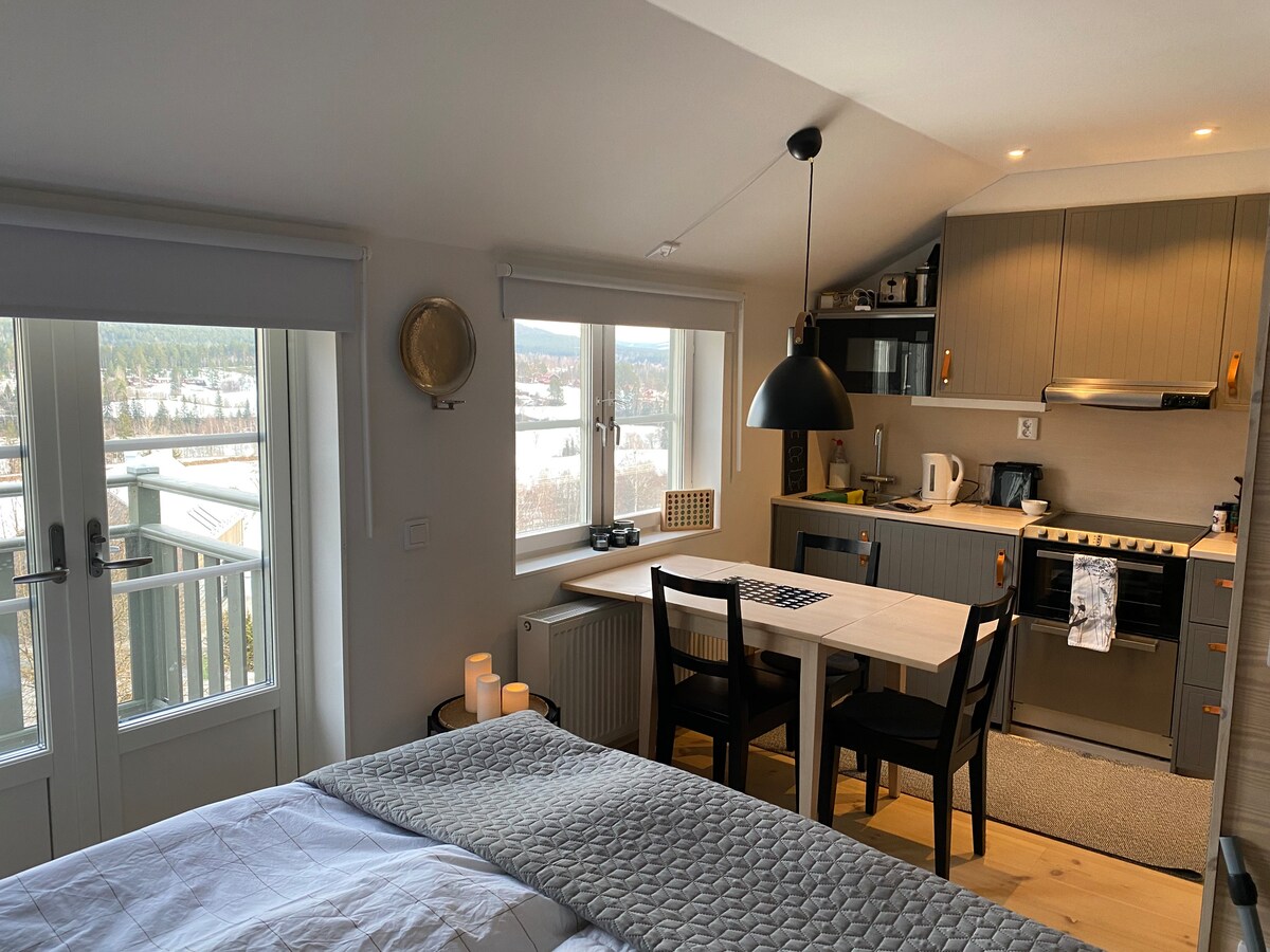 Bucură-te de o experiență unică în studioul nostru nou construit din Järvsö Lodge, cu o senzație excelentă de hotel. Dacă dorești să stai central la standardele hotelului, dar încă mai ai posibilitatea de a-ți găti propria mâncare, apartamentul nostru este alegerea perfectă. Apartamentul este o bijuterie bine planificată de 21 mp cu vedere la Ljusnan și are tot ce îți trebuie pentru o ședere plăcută în Järvsö. În casă există zone de living minunate, acces la magazia de perete, spațiu de depozitare pentru biciclete etc. În apartament, hol, baie, dulap de uscare, zonă de bucătărie, pat dublu și pat suplimentar vb.