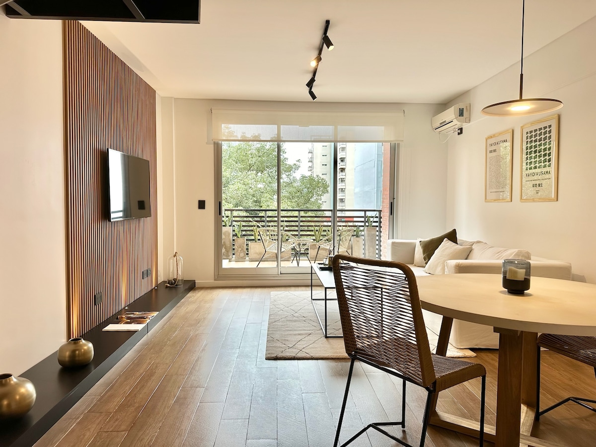 Bună! Acest apartament frumos este în Palermo Hollywood, unul dintre cele mai bune cartiere din oraș, deoarece multe dintre cele mai bune propuneri gastronomice coexistă acolo, cu locuri de design și modă care mențin spiritul autentic al unui cartier rezidențial din Buenos Aires. Poți merge pe jos sau cu transportul direct la mai multe puncte interesante, deoarece este foarte bine conectat; sau poți lua o bicicletă publică și poți profita de pista de biciclete Gorriti care trece prin ușa imobilului.