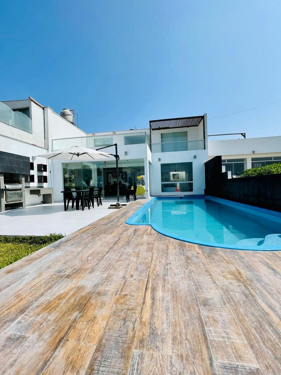 Casă frumoasă cu piscină (1200m2), ideală pentru timpul familiei, zonă liniștită pentru a te deconecta de la forfota orașului. Piscina are o patină pentru copii (vezi pozele) Terasă cu șezlonguri pentru odihnă. Zonă pentru grătar/cuptor manual, masă în aer liber, grădină mare pentru recreere, jocuri precum Sapito, Futbolin, Voley, bucătărie și bucătărie și ustensile echipate. Cinci dormitoare mobilate cu baie proprie. Locuința este doar pentru oaspeți.