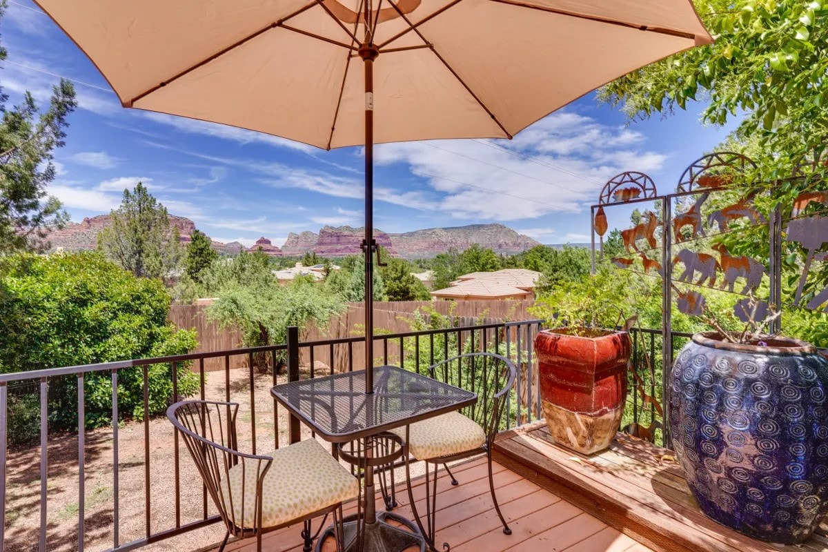 Grab the Adirondack chairs for a night of stargazing in one of only a few designated night sky communities in the country. Brimming with Southwest style, this tranquil escape offers spectacular views of the red rocks from your private Suite and private patio. Quiet and secluded guest en-suite located on 1 acre of property in an upscale neighborhood in the Village of Oak Creek, Sedona. The Suite is attached to the main part of the house with pvt entrance/pvt bath. Separated and secured by two locked doors. Private parking with keyless entry. No shared spaces. Entire Guest Suite with private entrance and bath. Outdoor patio area to relax and take in the amazing red rock views. I am available via text or phone call anytime. Or in person. This secluded, 1-acre of private property is nestled in the upscale neighborhood of the Village of Oak Creek, located nearby are over 135 Sedona hiking and biking trails. Just minutes away from Uptown Sedona, this quiet community offers quaint coffee shops and fine dining to casual eateries. The Suite is located to several famous landmarks such as Bell Rock, Cathedral Rock, Chapel of the Holy Cross, Courthouse Butte, Little Horse trail. Many other "must sees". All within minutes from here by your car as public transportation is limited. No drugs or weapons. There is a noise curfew of 10 pm. No smoking allowed on property or in Suite. No pornorgraphic, racist or sexually explicit use of Host's personal wifi will be permitted. Suite Mimosa is a charming and cozy private Suite nestled in an upscale neighborhood in the Village of Oak Creek, secluded on this beautiful 1 acre of private property you will have access to over 135 hiking and biking trails unique to the area, a community offering quaint coffee shops and fine dining to casual eateries, only minutes away from the hustle and bustle of Sedona.