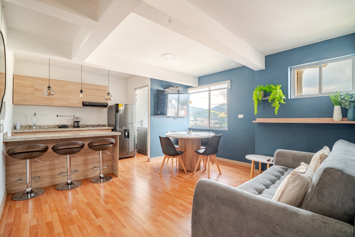 En pleno corazón de Manizales, cerca a centros comerciales y la animada zona rosa del Cable, la ubicación es tan central como segura. Su interior, con decoración moderna, invita a la relajación: desde la cama ortopédica hasta el sofá cama y el balcón con vistas cautivadoras. Equipado para estadías prolongadas, ofrece cocina completa, internet veloz, y zona de lavado. Con parqueadero y ascensor, es el refugio urbano ideal para experiencias memorables. Vive la ciudad con estilo y comodidad.