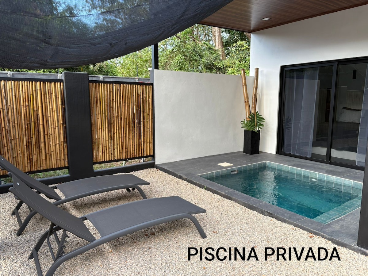 Détendez-vous dans ce logement moderne, calme et sécurisé, situé dans une propriété fermée avec parking intérieur. À 5 km de la plage de Tamarindo, restaurants et vie nocturne. Profitez de votre piscine privée et de tout le confort : lit king-size, cuisine équipée, eau chaude, douche et transats. Un lieu idéal pour un séjour paisible sous les tropiques.
