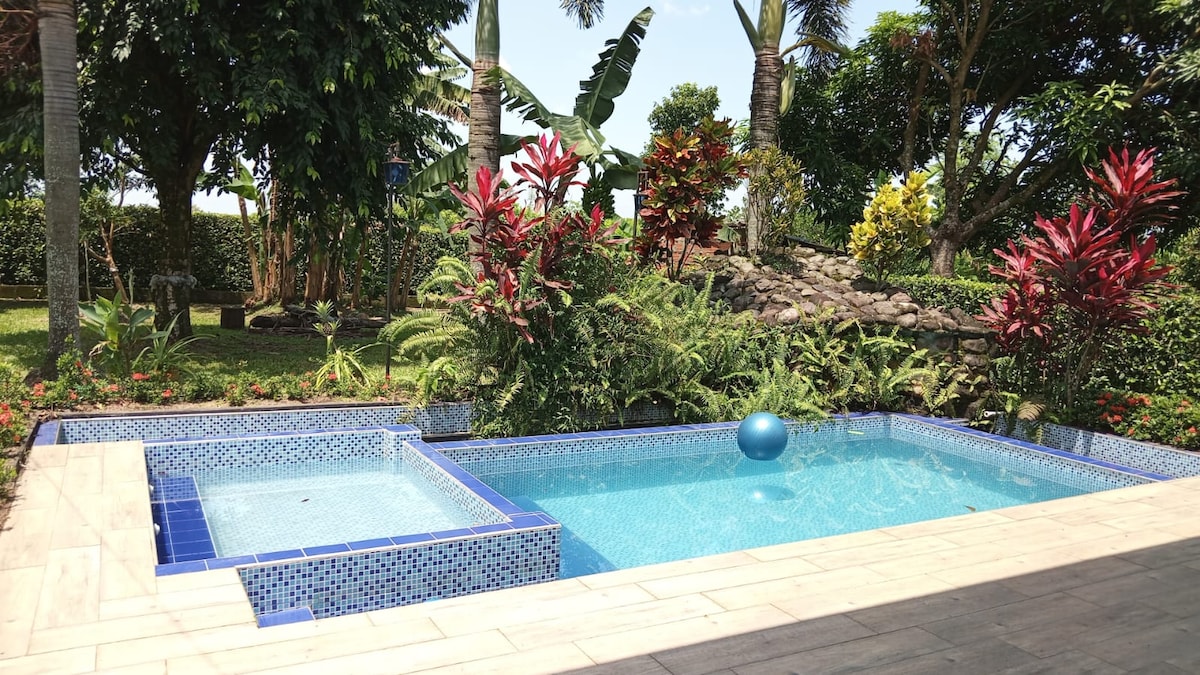 Evadează în această cabană liniștită din Villavicencio, chiar înainte de taxa de drum și la 10 minute de aeroport. Bucură-te de o cadă cu hidromasaj privată, vedere frumoasă la etajul al doilea și o bucătărie complet utilată. Cabana are 3 dormitoare, fiecare cu un pat dublu și un pat single, plus o piscină și zone verzi mari, înconjurate de natură. Ideal pentru familii, călătorii de afaceri sau o escapadă relaxantă aproape de oraș. 🌿🛁🌅