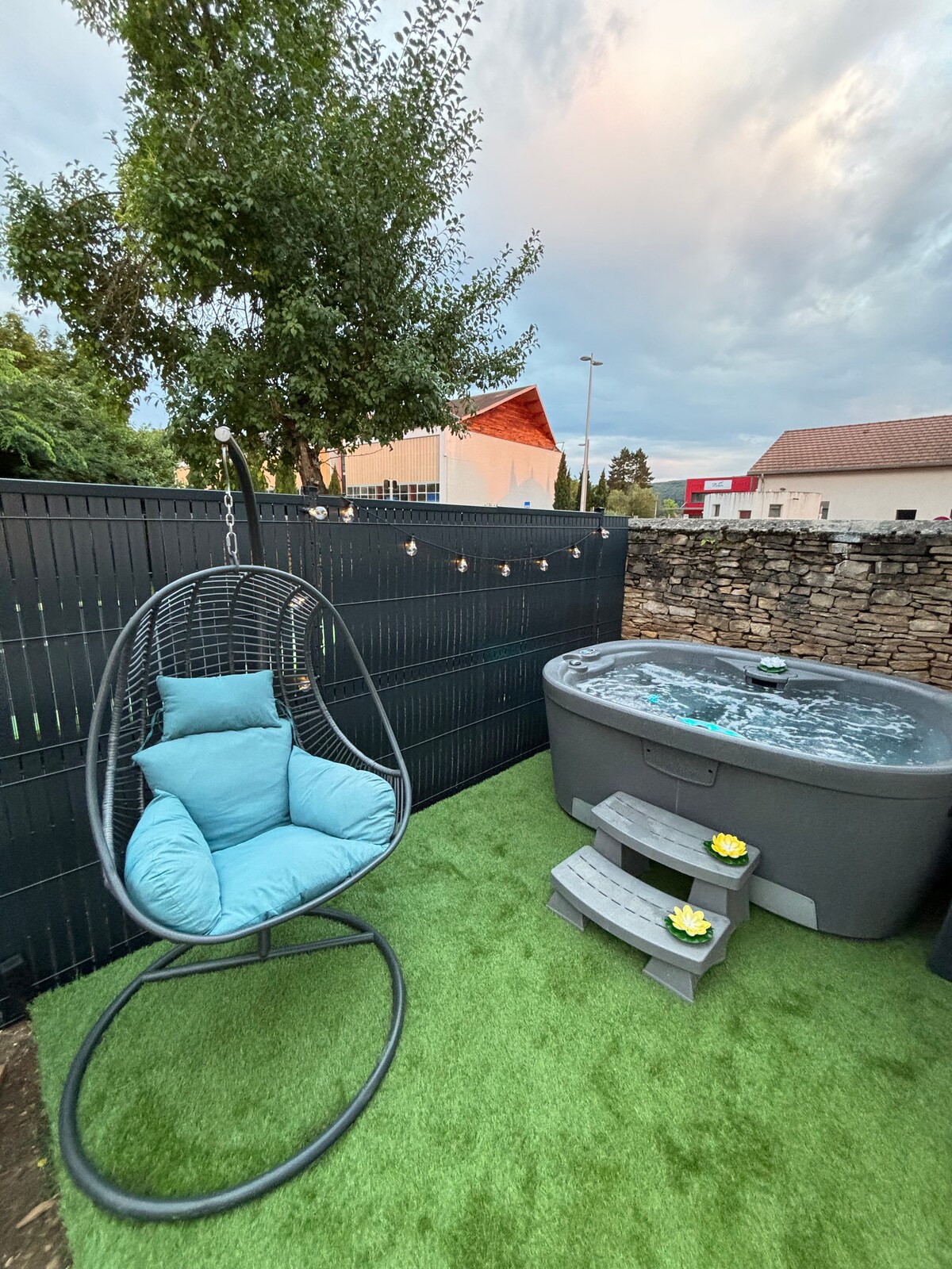 Ce logement paisible offre un séjour détente pour toute la famille ou entre amis situé à 200 mètres du centre de la citée médiévale de Cremieu, proche de toutes commodité avec un jardin et un jacuzzi inclus sans supplément pour vous détendre ! Ce logement entièrement climatisée et très bien agencé qui sera rendre votre séjour inoubliable . 2 chambre 1 grand lit 2 petits lit 1 canapé lit Cuisine entièrement équipé Lave linge Wifi Télé Grand douche italienne Barbecue