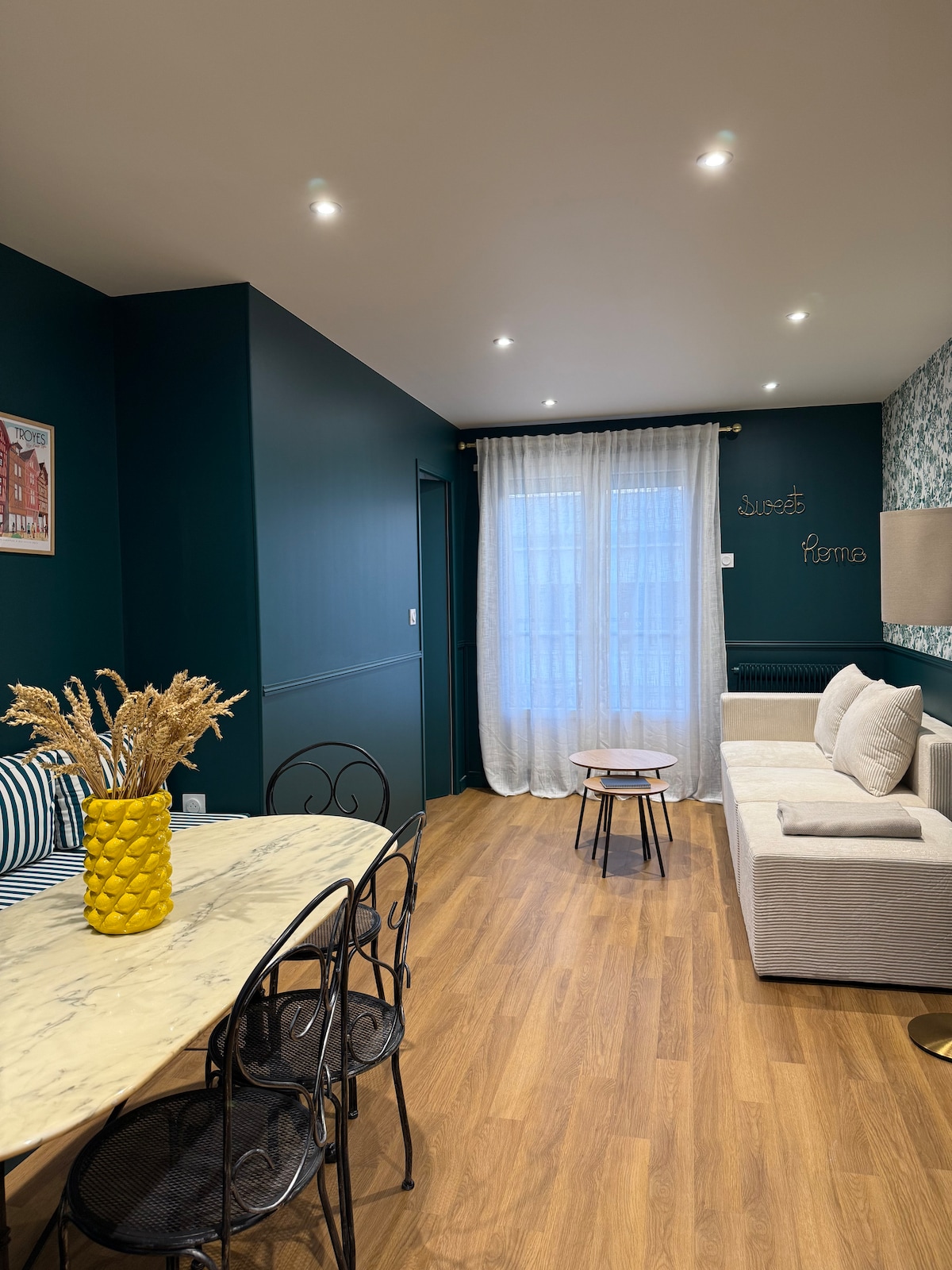 „Le Perchoir” este un pic ca acoperișul din Troyes, nicio altă cazare nu oferă o vedere atât de uimitoare asupra centrului istoric:) Vei fi sedus de serviciile acestui apartament decorat și echipat cu gust! ☆ Vedere panoramică la centrul orașului ☆ Situat la 100 de metri de gară Centrul☆ orașului la 100 de metri de proiectorul☆ 4K al apartamentului ☆ Finisaje de înaltă calitate, lenjerie de pat☆ Simmons 160x200 Televizor☆ de înaltă calitate și sistem de sunet ☆ Magazine la 1 min distanță Ai nevoie de informații? Contactează-mă :)