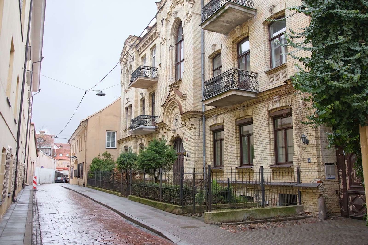 This is a studio apartment in uniquely beautiful areas of the Vilnius Old Town. The ground floor apartment in a characterful Baroque style home, built in the 17th century, with amazing views. It' spacious, with an open layout and allows you to feel at home. Thick walls and roller shutters will provide security, to ensure you are surrounded by peace and privacy. Walking distance to countless sights. An apartment would suit an individual, couple or small family.