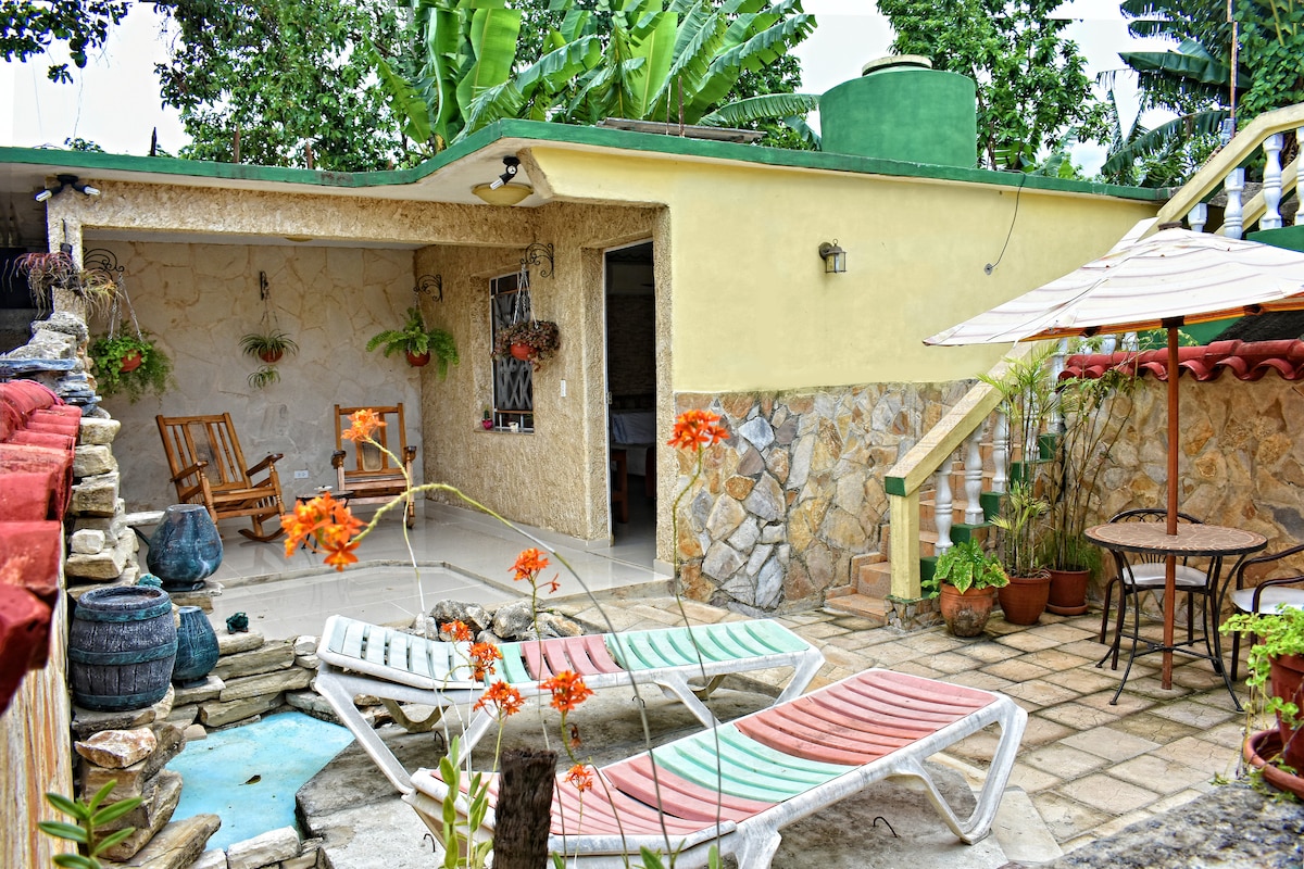 Bine ai venit în casa ta din inima orașului Viñales! 🌿 Apartamentul nostru este conceput pentru cei care caută echilibrul perfect între natura pură și confortul modern. Situat într-o zonă liniștită, dar la câțiva pași de centrul orașului, aici te vei bucura de liniștea zonei rurale cu toate facilitățile. Suntem una dintre puținele cazări din Cuba cu un sistem solar independent. Uită de penele de curent: vei avea electricitate, ventilație și încărcare a dispozitivelor garantate pe durata șederii.