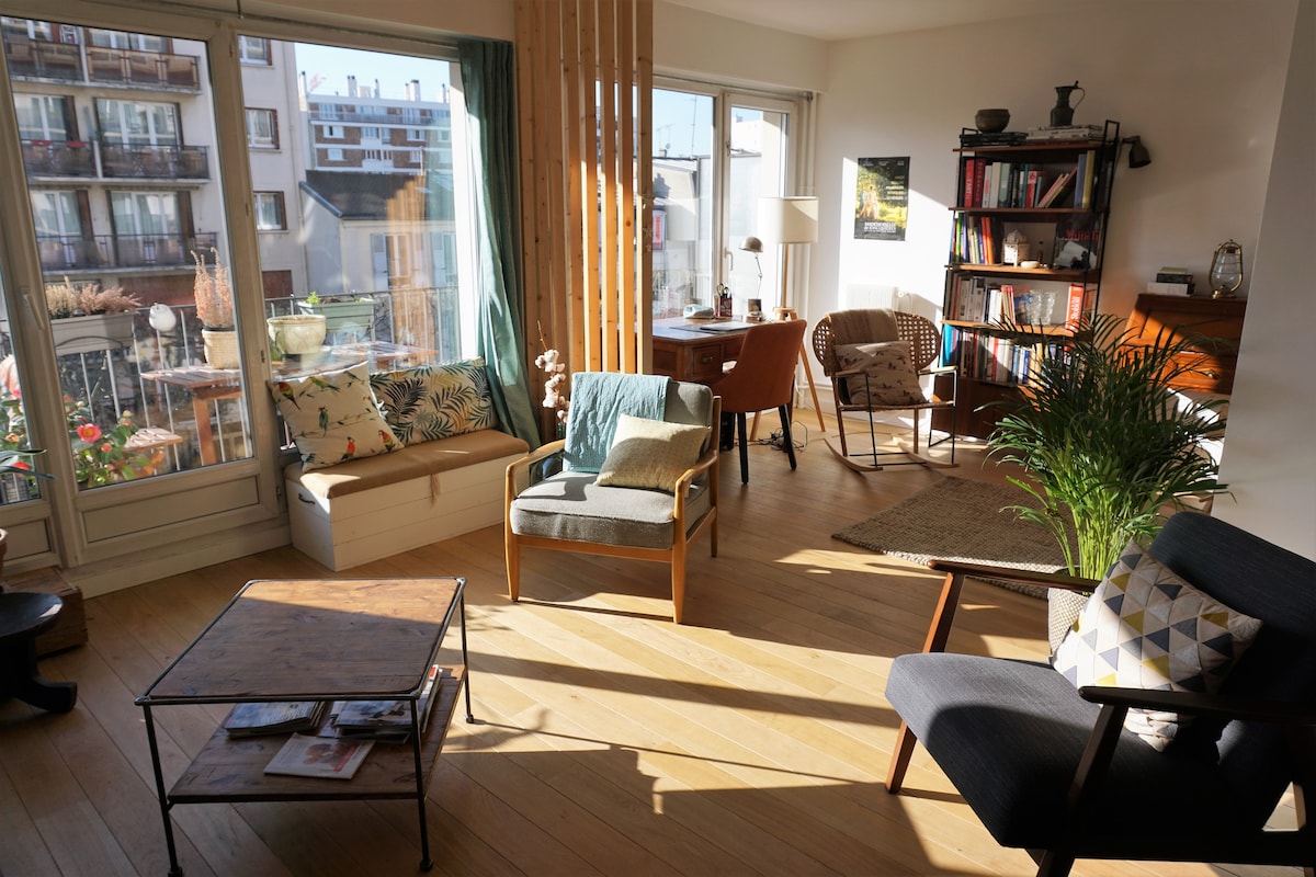 A wonderful private suite with a living room, an equipped kitchen, two bedrooms with double beds, a bathroom with large shower, washer-dryer. Ideally located in lower Montreuil/Vincennes limit, very close to Paris, and very well served by transport: RER A Vincennes, metro line 1 Bérault, and line 9 Croix de Chavaux & Robespierre. Paris's electric bikes for rent in front of the house. The accommodation does not have facilities suitable for wheelchairs.