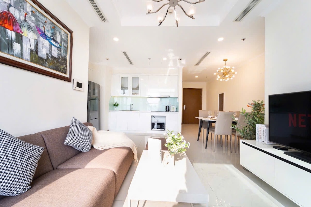 +Apartament în clădirea Landmark2, lângă Landmark81. +Acesta este Officetel (Office+Hotel). Apartamentul permite accesul prin Airbnb. +Dormitorul are saltea Luxury Memory-Foam, King Size-1m8x2m, perfectă și confortabilă, bună pentru probleme cu durerile de spate. +Există mașină de spălat și uscător +Igiena, curățenia sunt prioritatea mea principală. Lenjeria de pat și prosoapele sunt întotdeauna reînnoite la sosire +Există servicii de curățenie gratuite pentru șederi de lungă durată