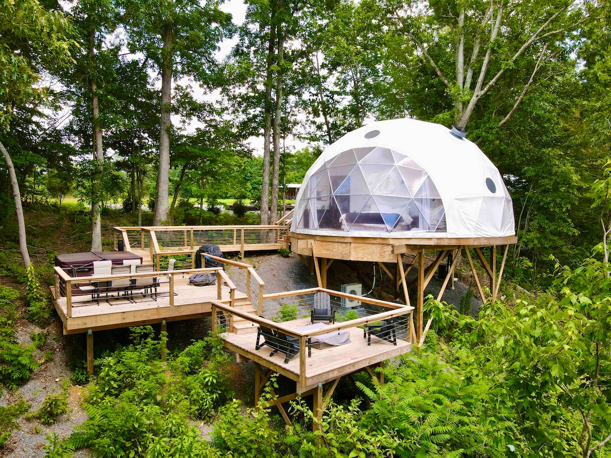 Welcome to our modern sanctuary nestled in the serene woods of Smithville, just a stones throw away from the tranquil waters of Center Hill Lake. Solace Sphere offers a contemporary twist on the classic dome design, featuring a one bedroom layout with a loft, complemented by a rejuvenating waterfall shower and top-of-the-line appliances for your comfort and convenience. We are located 1-1/2 hours from Nashville and 3 miles from Pate’s Ford Marina Bar and Grill. We hope you find your Solace.