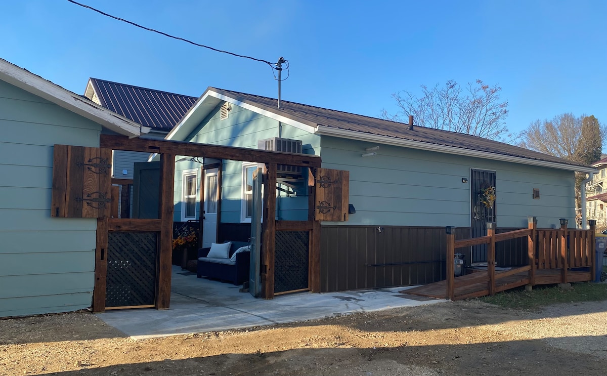 Dormitorul nostru convenabil din oraș a fost recent convertit! O cameră are un pat matrimonial, cealaltă cameră ca o canapea confortabilă. Are o chicinetă bine echipată cu chiuvetă, cuptor cu microunde, frigider/congelator în apartament, filtru de cafea Kuerig și multe altele. Acesta are, de asemenea, o baie completă. Acest apartament este pe strada principală și poate fi un pic zgomotos din trafic în timpul zilei și dimineața. În general, este mai liniștită noaptea, dar adu dopuri de urechi dacă acest lucru te deranjează.