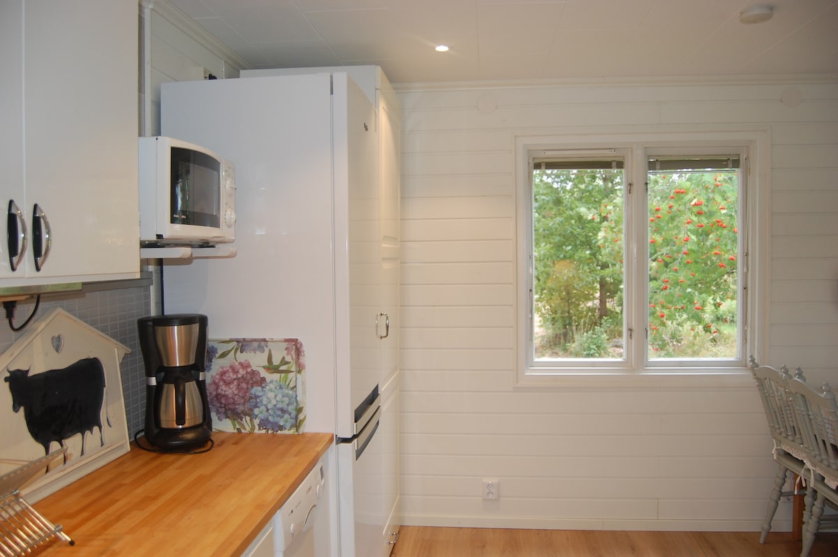 Idyllic cottage, 30 sq m, on a private beach, very clear lake water, close to the highway E4 and Gränna. Thirty minutes from Jönköping. One bedroom with a luxury bed for two and one room with a very comfortable foldable bed sofa for two and a kitchen area. Wood stove sauna, bathroom with shower, sink and toilet. The host lives in a house about 50 meters further away from the beach. The kitchen is for simple cooking, the use of a frying pan is not allowed, but charcoal barbecue is available.