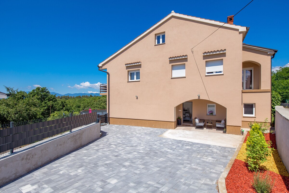 Apartament nou funcțional și cu aer condiționat într-o casă de familie la primul etaj, într-o locație liniștită în apropierea promenadelor forestiere, nu departe de mare și de centrul orașului Rijeka. Apartamentul constă din două dormitoare,unul cu pat dublu și celălalt cu două paturi de o persoană, ambele au acces la un balcon însorit. În living, camera de trei locuri servește, de asemenea, ca pat dublu suplimentar, bucătăria și livingul sunt compuse dintr-un spațiu și o baie frumoasă.