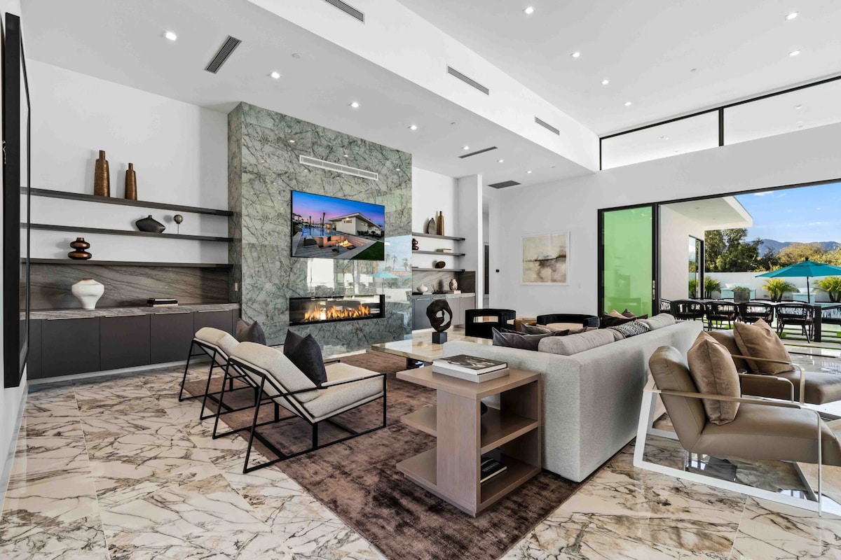 Relaxează-te în această locuință elegantă din Indian Palms Country Club, la doar 1,5 mile de Coachella și Stagecoach! Are 2 apartamente principale Cal King, piscină privată cu apă sărată și spa, vedere la terenul de golf, sunet SONOS, bucătărie completă, 4 biciclete de croazieră și nu numai. Bucură-te de un lux liniștit, cu acces facil la muzică, golf și evenimente ecvestre. 🔑 Condiții de rezervare: Profilul Airbnb trebuie să includă numele, adresa de e-mail și actul de identitate cu fotografie Numele oaspeților sunt obligatorii Peste 21 de ani de închiriat Perfect pentru festivaluri, evenimente cu cai sau o escapadă relaxantă!