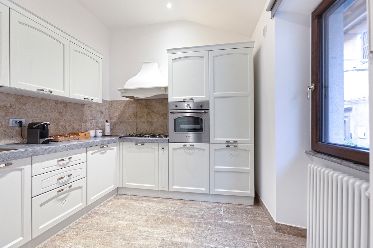 Bucură-te de o vacanță elegantă în această suită din centrul istoric al orașului Sutri, vizavi de Duomo. Relaxează-te în frumoasa cadă cu hidromasaj pentru cupluri sau în fața șemineului drăguț sau a unei saune răcoritoare. Detaliu atent, chicinetă echipată, selecție largă de ceaiuri și ceaiuri din plante. La doar 30 de minute de Roma, la 10 minute de Lacul Bracciano, la 5 km de frumosul sat Ronciglione și Caprarola. Casa a fost concepută pentru un cuplu cu maximum un copil.
