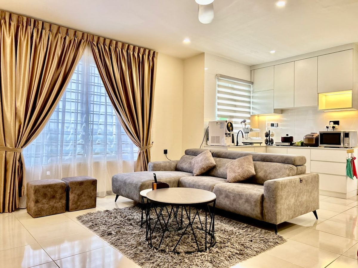 Bun venit în casa noastră! Apartamentul nostru este situat la etajul 9 în Jazz 1 Suites direct deasupra Vivacity Megamall cu priveliști uimitoare asupra orașului. Putem găzdui confortabil până la 8 persoane în această unitate, fie că este vorba de cupluri, vacanțe în familie sau o călătorie de afaceri. Jazz Suites se află aproape de: aeroport (5 km), Centrul Medical Borneo (2 km), centrul orașului (5 km), Universitatea Swinburne (2 km) și Unimas (10 km). **Avem alte unități în această clădire. Anunță-ne dacă ai nevoie de unități apropiate pentru grupuri mari.**
