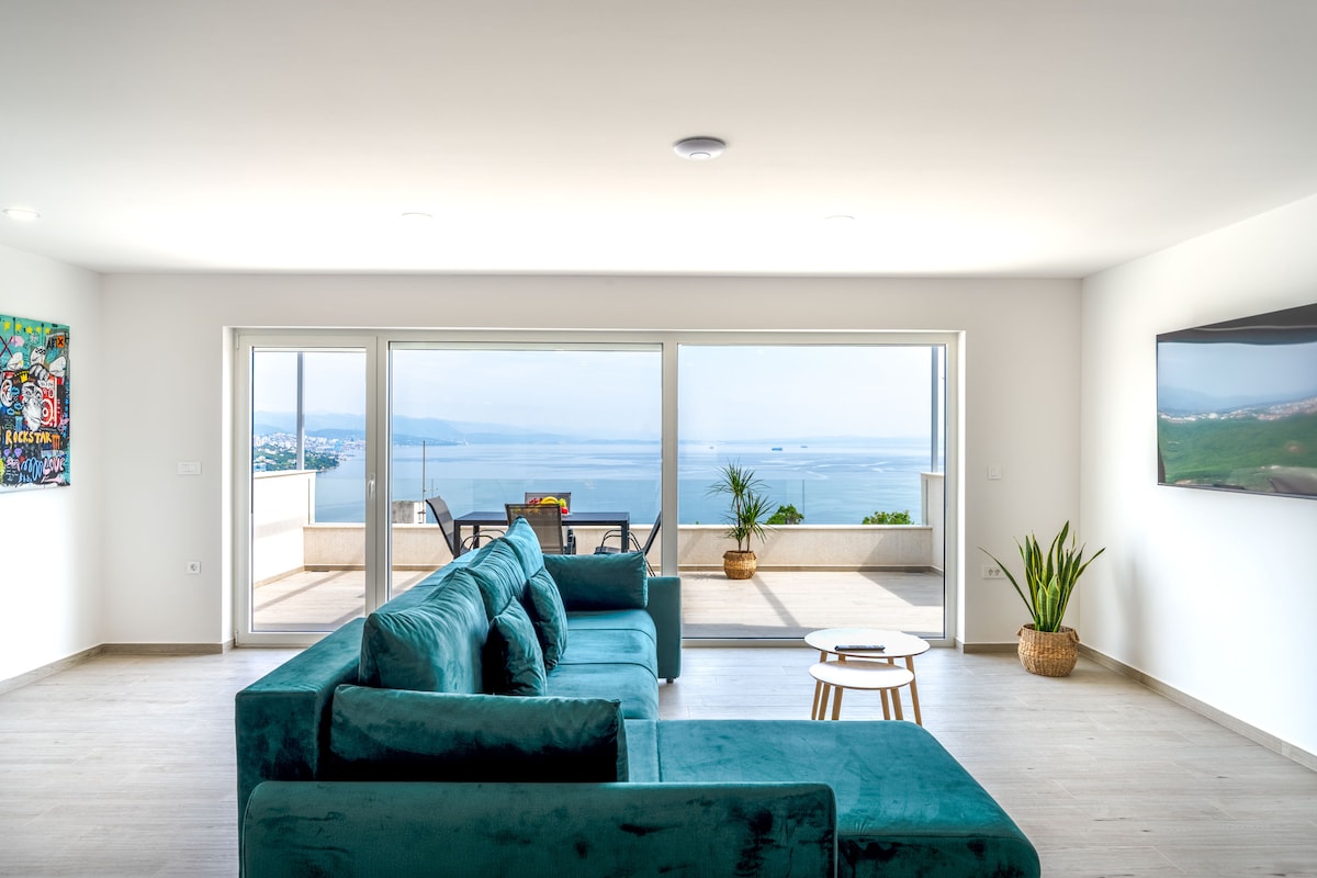 Furbished as a cosy nest (50m2) to enjoy the most beautiful VIEW trough the panoramic window make you feel softly situated on a white cloud. Located in the picturesque little town of Volosko, 10 steps from the sea, surrounded by little coffees and restaurants well known for their fish specialties. The seaside walk is 12 km long scattered sparks with pebbles and sea-leveled rocks, beaches with possibility to rent paddle boards, water ski and canoe.