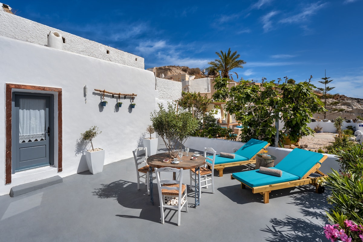 Situată în zona tradițională Karterados din Santorini, casa noastră tradițională de peșteri, complet renovată în 2018, este un loc unde arhitectura cicladică întâlnește cazarea de lux. Este ideal pentru cuplurile, familiile, prietenii și călătorii care doresc să trăiască experiența unică de a sta într-o casă tradițională din peștera Santorini, cu toate facilitățile moderne. Centrul orașului Fira se află la 1,5 km (15 minute de mers pe jos). Instagram: aspro_santorini