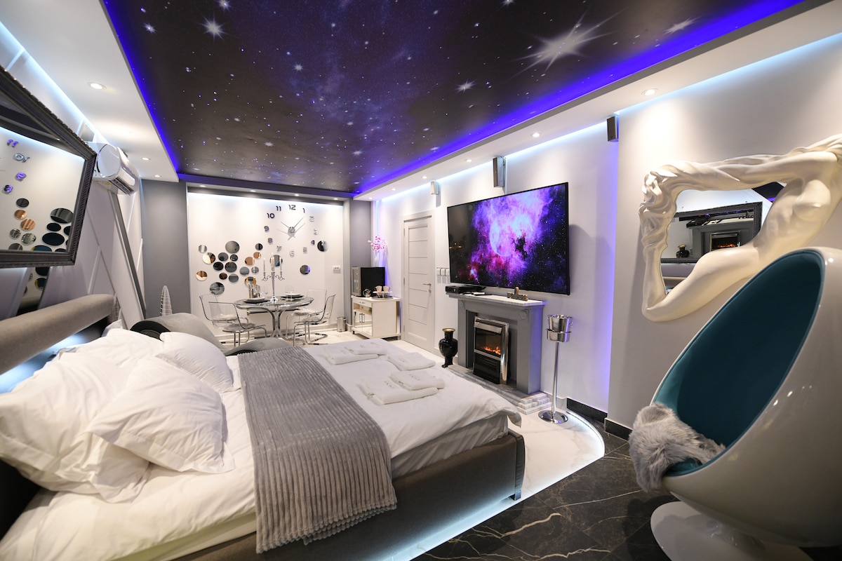 În categoria suitei de lux, AURORA SPA este o cazare conceptuală remarcabilă, concepută pentru a oferi clienților o experiență senzorială extraordinară. În plus față de designul și cazarea atractivă, apartamentul utilizează tehnologia inteligentă pentru a regla diverse funcții. Recomandat pentru cupluri romantice, apartamentul cu Jacuzzi AURORA SPA este o experiență irepetabilă. Recomandare plăcută. MASAJ, DECOR, TERAPIE CU AROMĂ, CINEMATOGRAF, PISCINĂ CU HIDROMASAJ, JOCURI XBOX, SAUNĂ...