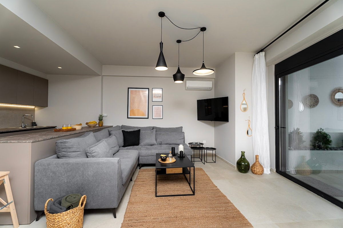 Verna Deluxe Suite este o casă de lux rafinată, care oferă o piscină privată și vedere panoramică la mare. Cu design modern și detalii elegante, are o bucătărie complet utilată, un dormitor confortabil și un living și o zonă de luat masa elegantă în plan deschis. Apartamentul poate găzdui până la 4 oaspeți cu un dormitor, o canapea extensibilă în zona de living, o baie, aer condiționat, WiFi și parcare privată. Situat ideal, la doar 4 minute de plajă și la 10 minute de aeroport, este perfect pentru o ședere relaxată și memorabilă.
