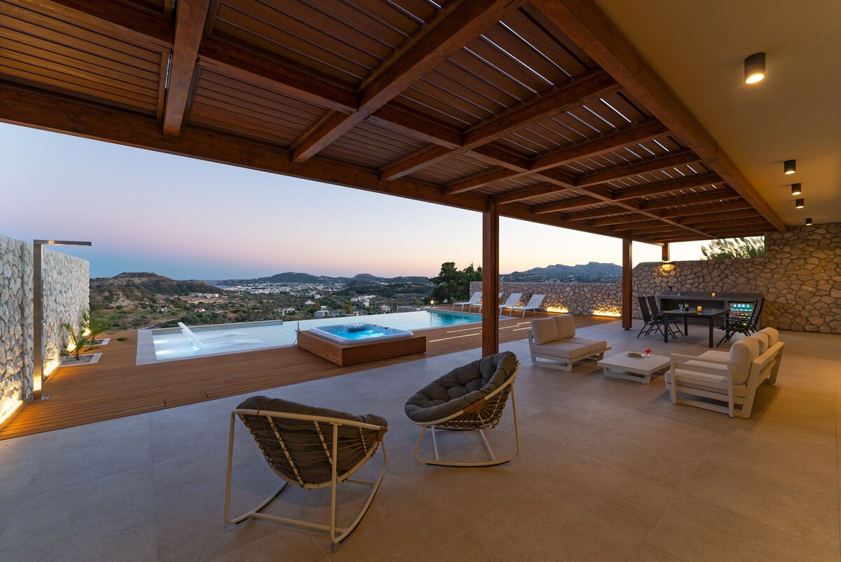 Vila Equinox este un refugiu de lux la doar 500 m de plaja Ixia, la 4 km de orașul Rodos și la 10 km de aeroport. Bucură-te de priveliști uimitoare asupra Mării Egee, de interioare elegante și de briza răcoritoare de pe coasta de vest. Aproape de restaurante, magazine și situri istorice, cu servicii opționale, cum ar fi bucătar privat, yoga și transferuri disponibile. Amestecul perfect de confort, comoditate și eleganță.