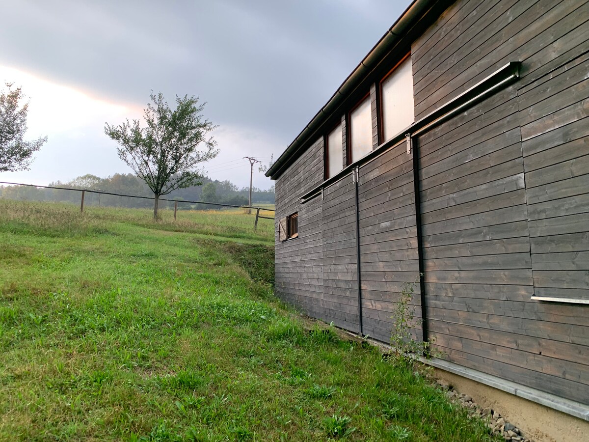 Cazare în valea liniștită a pârâului Paleskový cu priveliști frumoase asupra livezii noastre și a dealurilor din jur. Cabana noastră este un tribut adus peisajului și arhitecturii curate și moderne. În cazul unui grup mai mare, se poate închiria și o a doua cabană. Pe proprietate există locuri de parcare pentru 3 mașini. Clădirea mai mare este pentru 6-8 persoane, a doua cabană este pentru 3 oaspeți. Clădire: 2 dormitoare și o galerie deschisă. Bucătărie complet utilată. Baie cu duș, toaletă, mașină de spălat. Cabana: Dormitor și galerie Etajul inferior are un pat și o bucătărie Duș, toaletă
