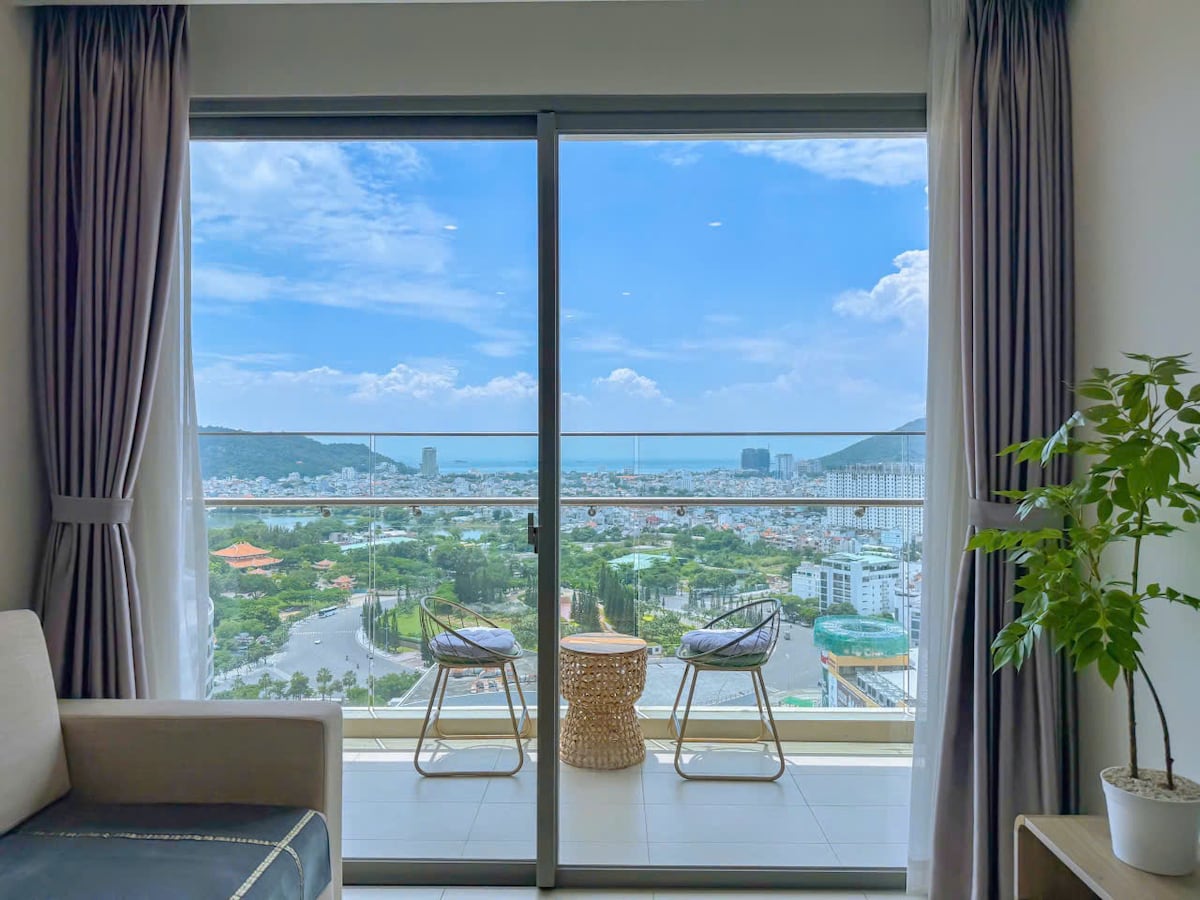 Apartamentul este clasificat în cea mai bună priveliște din clădire. Este o poză vie. De pe balcon poți vedea tot orașul maritim VungTau și apusul de soare peste mare. Apartamentul este complet mobilat și potrivit pentru ca oaspeții să stea și să lucreze online de acasă pentru o lungă perioadă de timp. Patul dulapului este proiectat din lemn natural și ferm. Balconul este larg și lung. Poți face plajă, lucra, citi cărți , cafea dimineața sau poți savura un pahar de vin și te poți uita la apusul de soare deasupra mării.