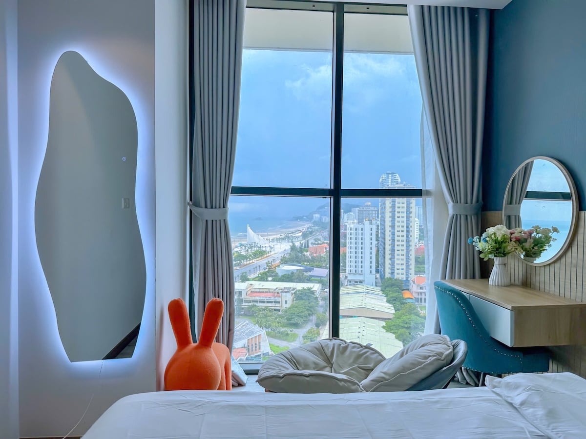 Apartamentul este complet echipat de Phuong, cu un pat moale. Televizor cu program NetFix, frigider cu mașină de spălat completă Spațiul este deschis, romantic seara, pentru a te ajuta să te bucuri de aerul curat după zilele de lucru obositoare. La poalele clădirii se află supermarketul convenabil GS25, cafeneaua, magazinul de mese din jur. Apartamentul se află la numai 500 m de mare, chiar în inima VT Utilități gratuite, cum ar fi piscină la etajul 36, saună, sală de gimnastică. Programul de întreținere a piscinei la fiecare 3