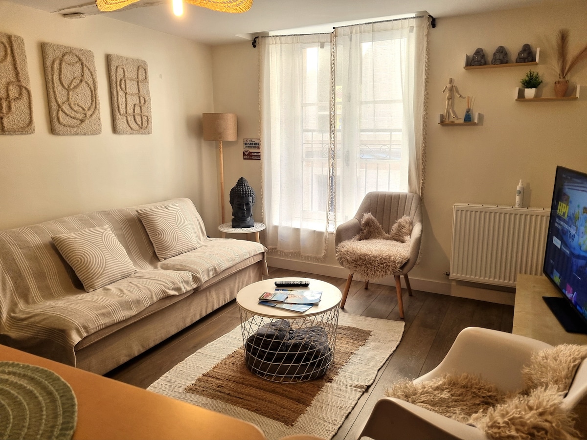 Green & Cosy est un logement classé atypique situé au coeur de la ville, proche de nombreux restaurants. Mansardé, ce logement ressemble à un cocon avec une vue imprenable sur le Château-fort de Sedan. Pensé pour être le plus confortable possible, vous trouverez tout le nécessaire pour vous sentir chez vous (jeux de société, livres, jouets, vaisselle, linge de maison...) Animaux bienvenus (supplément de 15€)
