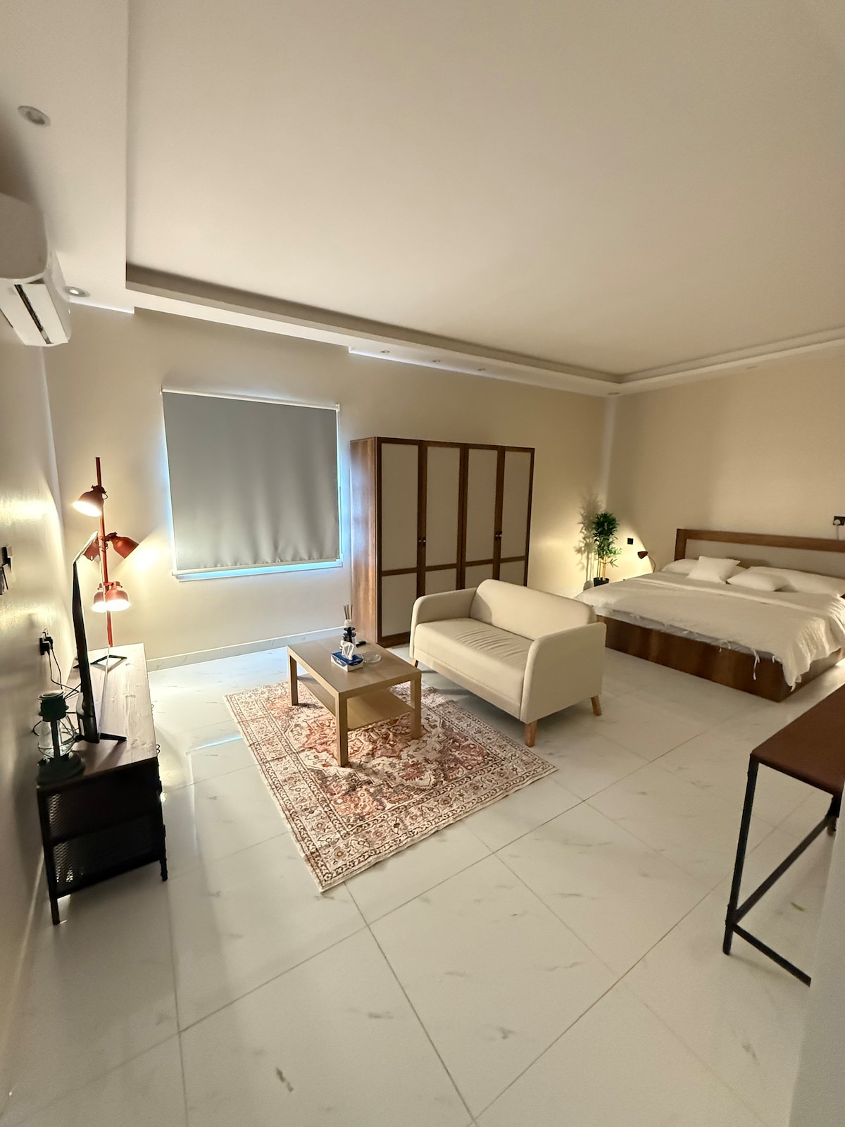 Relaxează-te cu această ședere liniștită și elegantă. Un studio liniștit și elegant, cu auto-intrare în cartierul de cooperare , constând dintr-un pat matrimonial, o sesiune laterală, un televizor inteligent cu YouTube și Netflix , în plus față de un colț privat pentru prepararea ceaiului în bucătărie și un ceainic, iar toaleta sa este plină de căzi de baie. Acest studio este situat strategic în inima orașului Riyadh și există toate serviciile și evenimentele , Pulivard Riyadh și Boulevard Lord este la 15 minute și 10 minute de Winterland .. Notă : salteaua se schimbă după fiecare oaspete pentru confortul tău