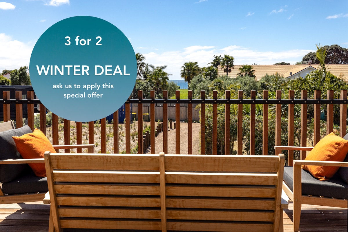 ** WINTER DEAL - Stay 2 or more nights and get a night free for stays taken between 1 May and 30 September 2026 (excluding holiday weekends)** Onetangi Beach Stays Apartment Experience the pinnacle of coastal elegance on Waiheke Island! From your expansive sun drenched deck enjoy glimpses of the shimmering ocean, just a heartbeat away from the pristine white sands of Onetangi Beach.