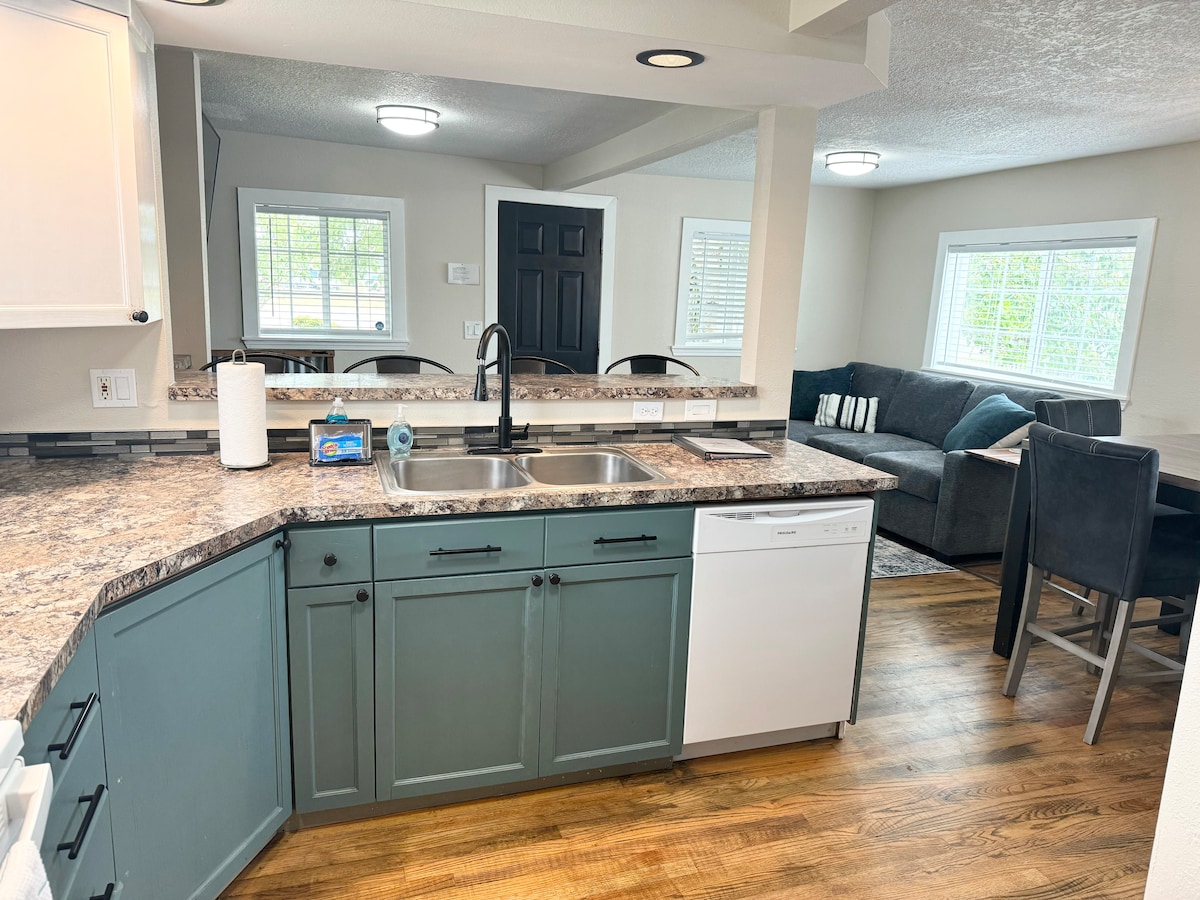 Ilwaco este un orășel portuar mic de pe coasta statului Washington, cu mult caracter. Spațiul de locuit al casei noastre de trăsuri moderne este la etaj, așa că este aerisit și confortabil, 55,7 mp. Este la 2 minute de mers pe jos de port și la 10 minute de mers cu bicicleta de Cape Disappointment (șase biciclete la dispoziție și jucării de plajă în garaj) și de plajă. La etaj se află dormitorul principal cu pat matrimonial „Queen”, baie, bucătărie/living. La parter există un dormitor cu pat suprapus simplu peste dublu, un dulap pentru jocuri și mașină de spălat/uscător.