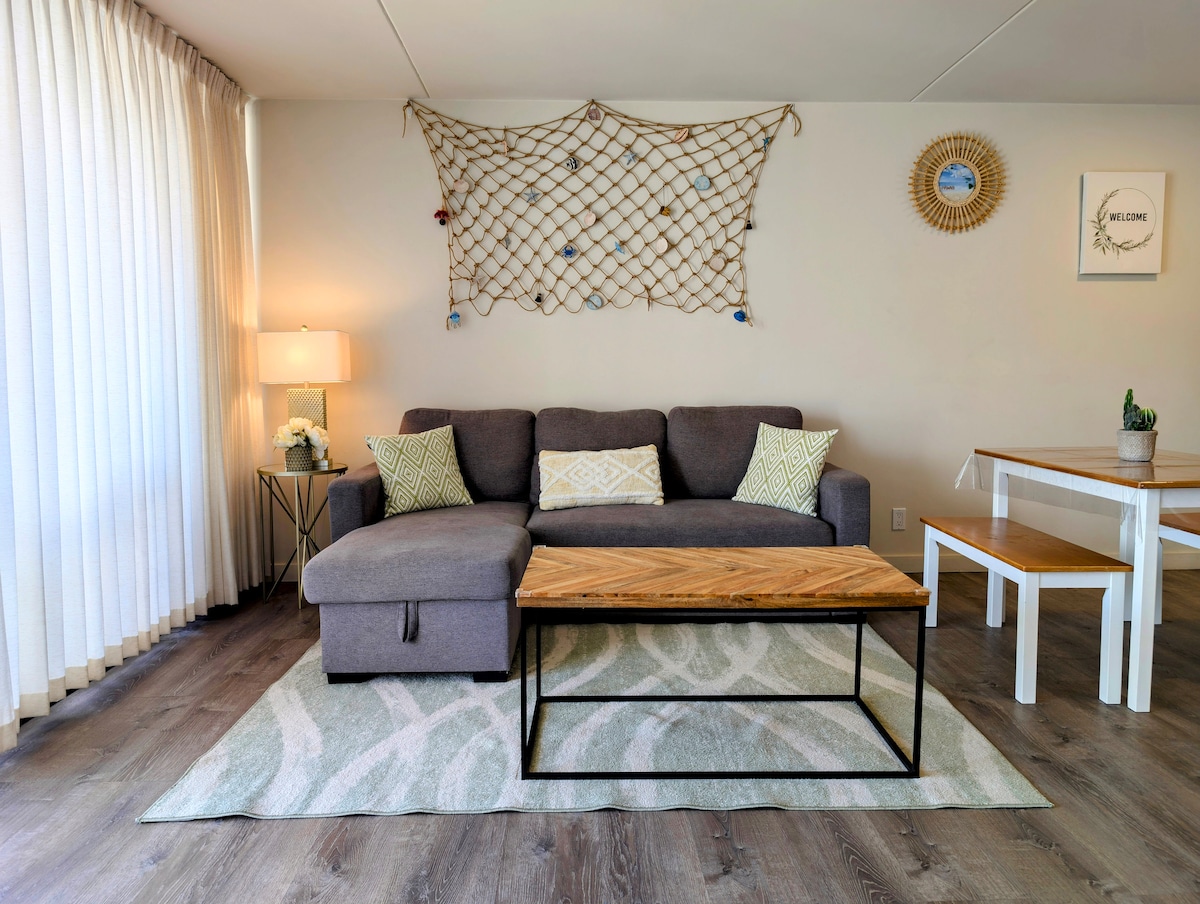 Scufundă-te în vacanța ta de vis pe plajă! Bucură-te de apusuri de soare uimitoare și focuri de artificii vineri seara de la balcon. Unitatea de lux complet reproiectată este dotată cu un pat matrimonial California King, canapea extensibilă, poate găzdui până la 4 oaspeți, oferă numeroase dotări potrivite pentru copii, ceea ce o face alegerea perfectă pentru o familie. Se află într-o proprietate pe plajă și se află la doar câteva minute de centrul comercial și restaurantele Ala Moana. Bucură-te de priveliștea superbă neobstrucționată a oceanului (plaja este la doar câteva minute de mers pe jos).