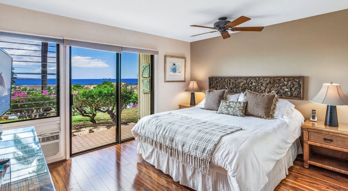 Enjoy the panoramic ocean view directly from the living room. This wonderful ground floor unit offers privacy and tranquility with expansive ocean views, where you can enjoy seasonal whale watching, paddle boarding, surfing, snorkeling as well as many other activities just outside your door. The unit is also adjacent to one of the longest beaches on Maui, Sugar Beach. And just down the road you will find great shopping, restaurants, nightlife and the Maui Ocean Center.