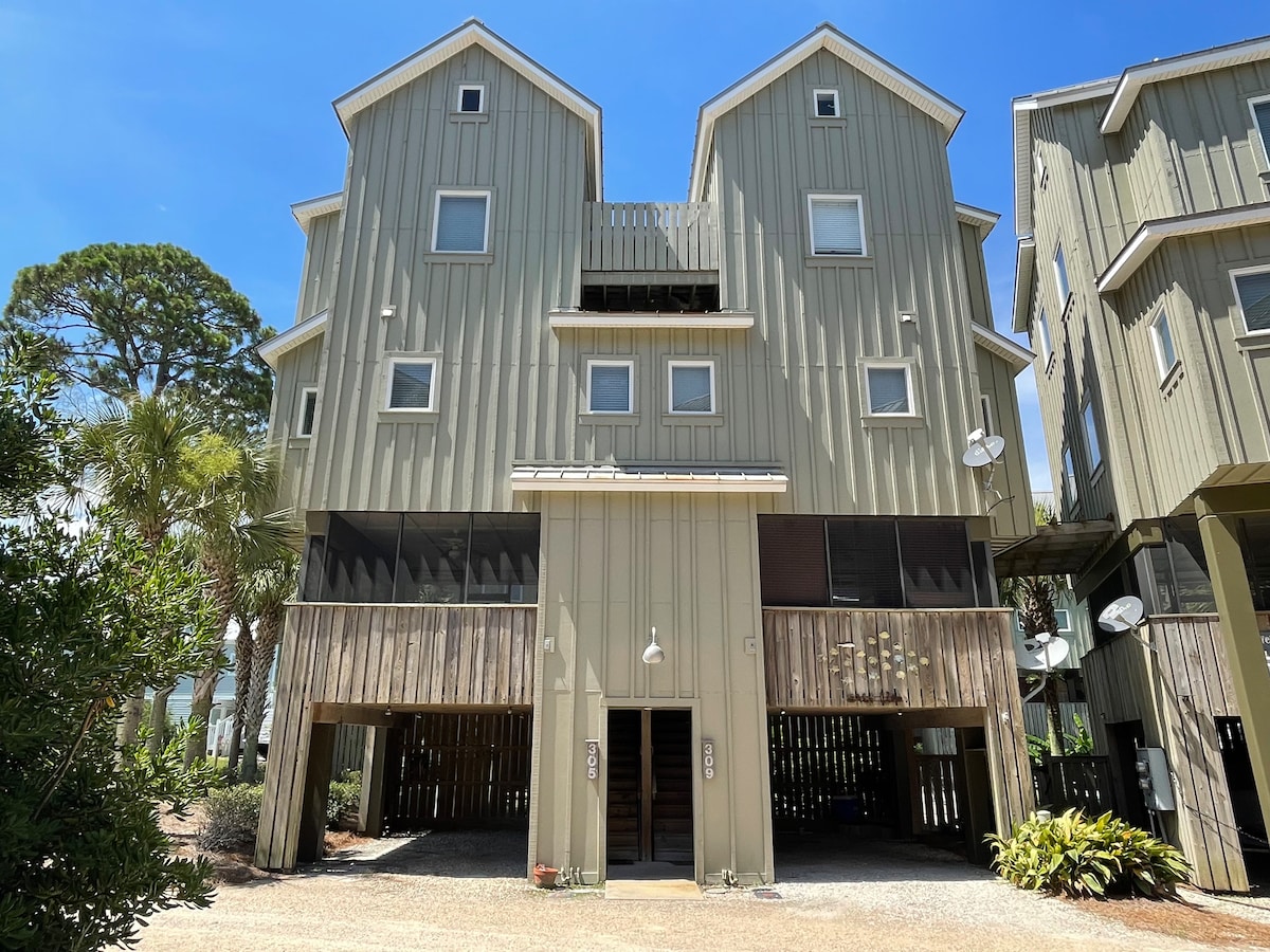 Four story condo located in a river front community making it the perfect family getaway. Magnificent, unobstructed pool and hot tub views with easy river/ocean access just seconds away! Beautifully decorated, everything included for your comfort. Large enclosed porch with plenty of seating for reading, T.V. or sports event! Great area for friends and family. Public boat ramp is adjacent to property, making it easy to launch your boat for the 15 minute ride to both Dog and St. George Islands.