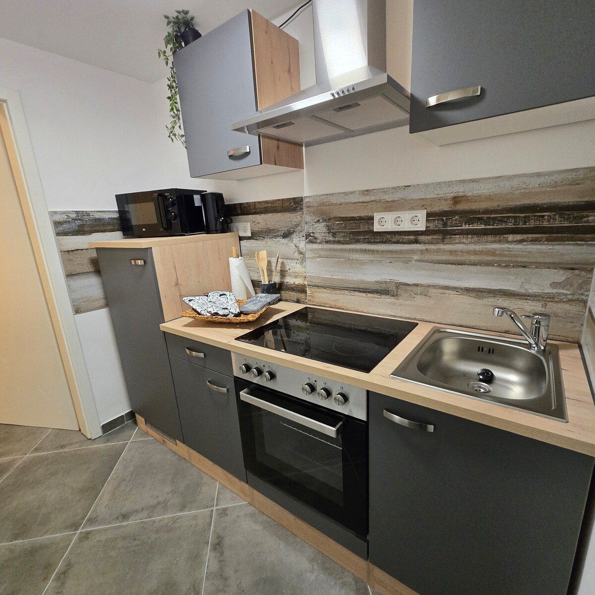 Bine ai venit la locuința ta temporară recent renovată din Waldbronn, lângă Karlsruhe! (Aproximativ 9 minute pe autostrada Kreuz KA) Acest apartament luminos și complet echipat are tot ce îți trebuie pentru o ședere relaxantă. Bucură-te de micul dejun pe balcon sau relaxează-te după o zi lungă sub dușul mare de 100x90 cm. Apartamentul are o bucătărie de înaltă calitate (inclusiv blat de granit). Un loc de parcare gratuit direct pe teren asigură o sosire fără stres.