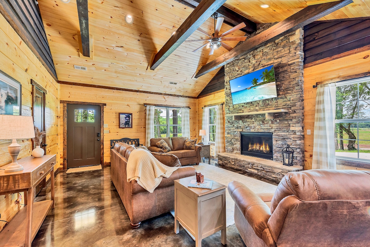 Scor mediu de 5 din 5, 42 recenziiRâu privat * Cadă cu hidromasaj* Vatră de foc* Pescuit* 10 acri