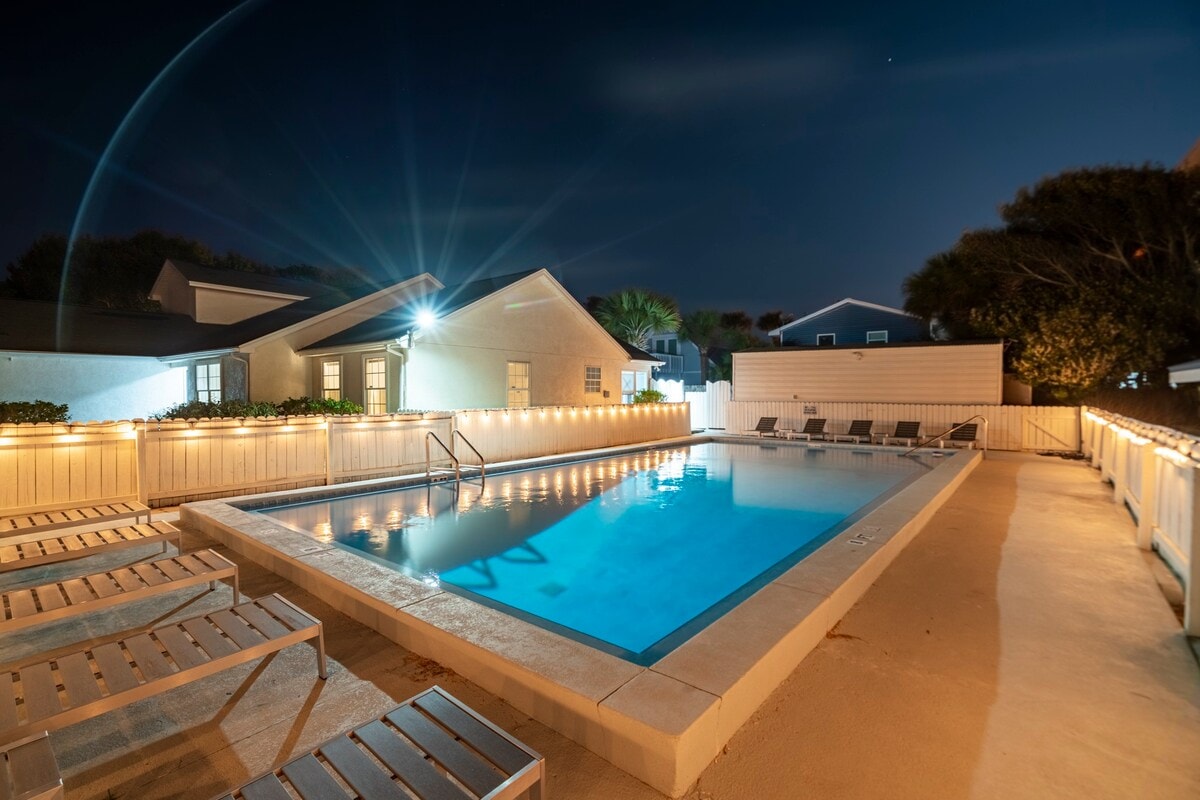 Casă pitorească, confortabilă, elegantă, departe de cărarea bătătorită și aproape de tot! Mergi pe jos până la plajă în aproximativ 10 minute sau la un restaurant în 5 minute...pentru a obține înghețată, a închiria biciclete în 4 minute sau a face drumeții sau a merge cu bicicleta pe Longleaf Greenway Trail, care începe la 5 minute de mers pe jos! Savurează cafeaua sau o băutură pentru adulți pe veranda din spate, cu vedere liniștită la curtea tropicală cu iazuri. S-ar putea chiar să vezi o mică faună sălbatică în timpul șederii tale...😊 Notă: potrivit pentru câini! Nu se acceptă copii sub 10 ani.