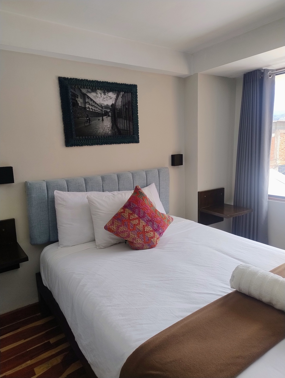 Disfruta de una habitación pequeña, luminosa y acogedora dentro de nuestra casona cusqueña ubicada a solo unos pasos de la Plaza de Armas. Al ser una habitación interior, ofrece un ambiente más tranquilo que las habitaciones que dan a la calle, aunque, por tratarse de una zona muy turística y concurrida, en algunos horarios podrás percibir algo del movimiento típico del centro. Aun así, es un lugar perfecto para descansar después de explorar la ciudad.