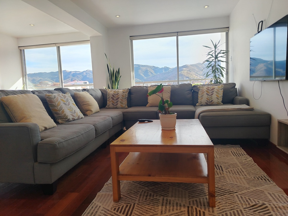 Apartamentul este situat într-o zonă centrală din Cuzco, unde poți găsi supermarketuri, restaurante, farmacii, bănci și instituții financiare, case de schimb valutar, clinici de sănătate și altele, decor modern simplu, funcțional, confortabil și bine luminat. Living cu bibliotecă, Wi-Fi, Netflix, cablu Magic, canapele confortabile, bucătărie modernă complet utilată și sufragerie, dușuri cu multă apă caldă 24 de ore, terasă cu umbrelă și vedere panoramică a orașului.