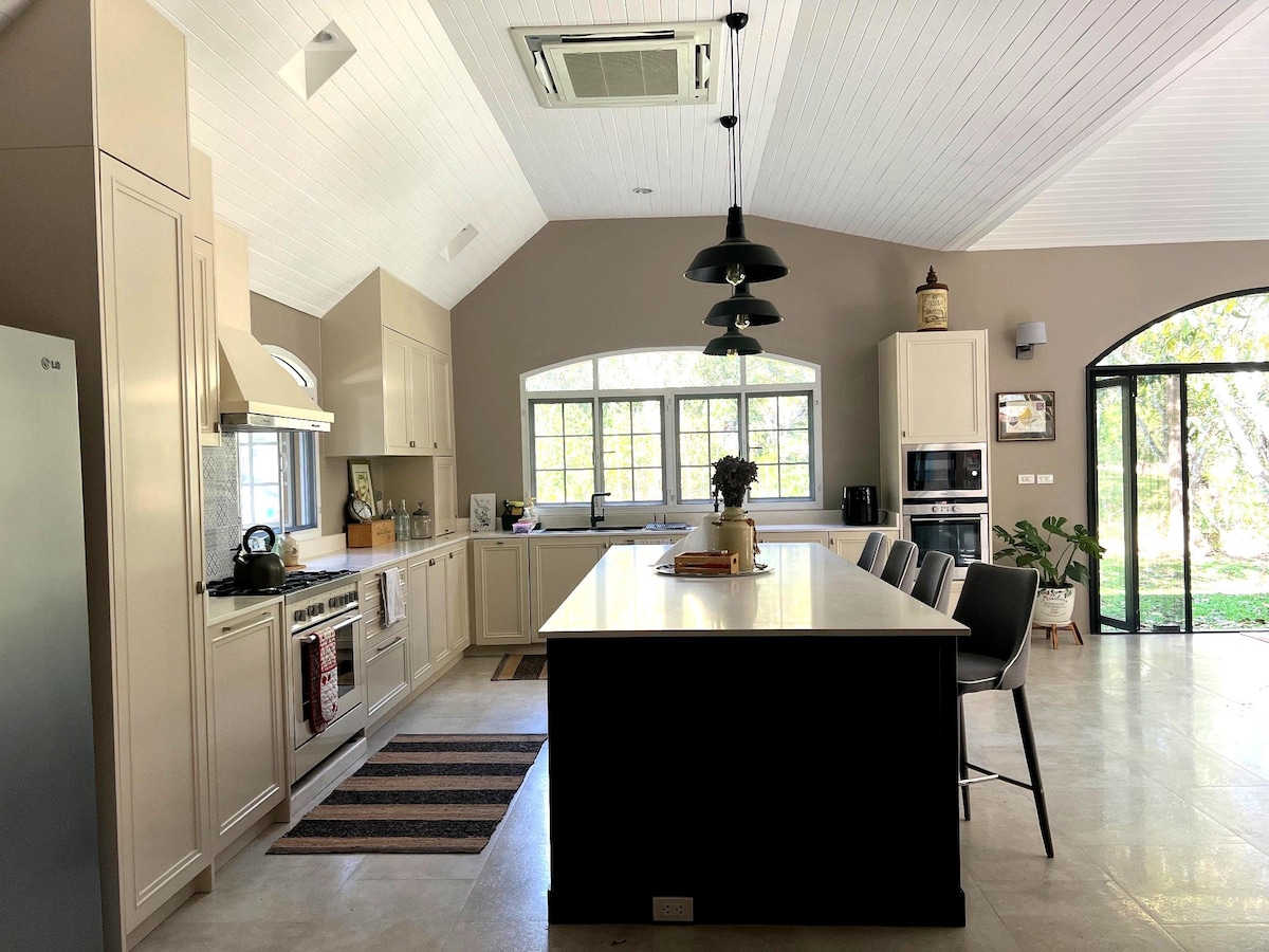 Relaxează-te într-o vilă cu piscină în stil toscan, cu o piscină lungă cu vedere la munții Khao Yai, situată într-unul dintre cele mai frumoase sate din zonă. Înconjurată de verdeață luxuriantă, vila are un decor cald în stil italian, cu o eleganță discretă. Aceasta este o ședere complet privată într-o vilă de peste 0,4 acri, inclusiv grădina, piscina și toate spațiile de locuit pentru grupul tău. Paturile sunt disponibile pentru maximum șase oaspeți; pentru grupuri mai mari, se poate aranja un cort sau o canapea, cu baie comună cu alte persoane
