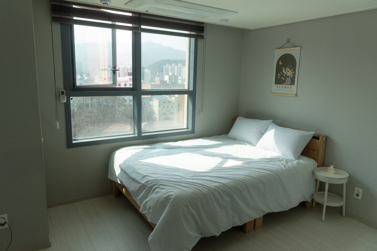 2023 Grand Open, E7 în Jukdo. - O cameră studio (pat dublu) - Doar în fața plajei Dongsan, 10Sec de la plajă - Check-in de la PM16:00 - Check-out până la ora 11:00 -3Min cu mașina de plaja Jukdo, plaja Ingu -15Min cu mașina de plaja Jumunjin, locația BTS MV -30 de minute cu mașina de plaja Kyungpo, Sok-Cho și Muntele Seolak. -Frigider, gamă electrică, cuptor cu microunde, veselă, tigaie - Șampon, Balsam de păr, Șampon de corp, Turn Mulțumim:)