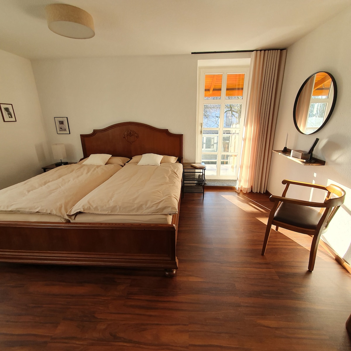 Sunt amenajat astfel încât să poți găsi relaxare și bunăstare. Prin fereastra mea mare din față te uiți în verde... la o pajiște mare, copaci și tufișuri. Am fost în jur de 50 de ani... chiar dacă suntem la modă acum, am experimentat foarte mult... dar recent am fost renovată și aștept cu nerăbdare oaspeți interesanți!
