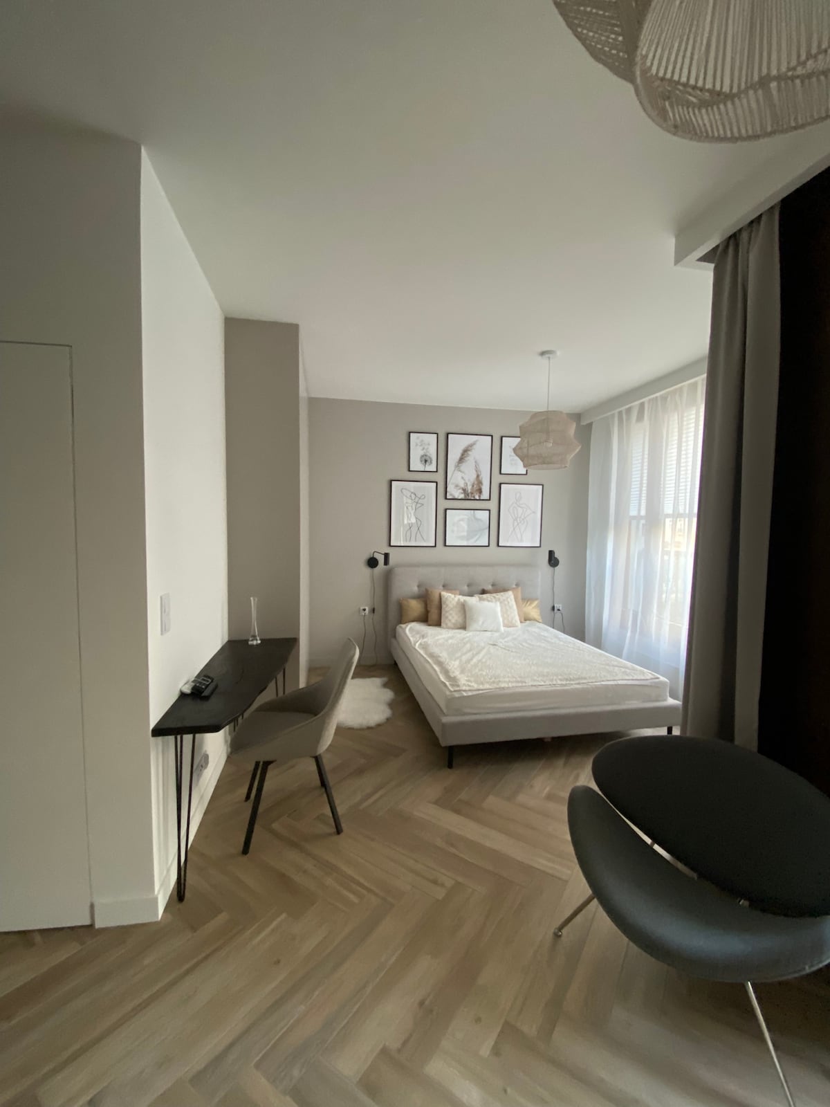 Când am creat acest apartament cu un dormitor, am vrut să-l facem cât mai funcțional posibil, dar foarte confortabil și elegant. Spațiu unde te poți relaxa și te poți simți ca acasă. Veți găsi un pat dublu confortabil în spatele peretelui industrial, fotolii unde puteți sta confortabil și viziona un film, o bucătărie complet utilată și o baie mică. Un avantaj imens al acestui studio de la etajul 7 este o terasă fermecătoare, mică, unde te poți relaxa cu cafea sau gustări atunci când vremea de afară este însorită.