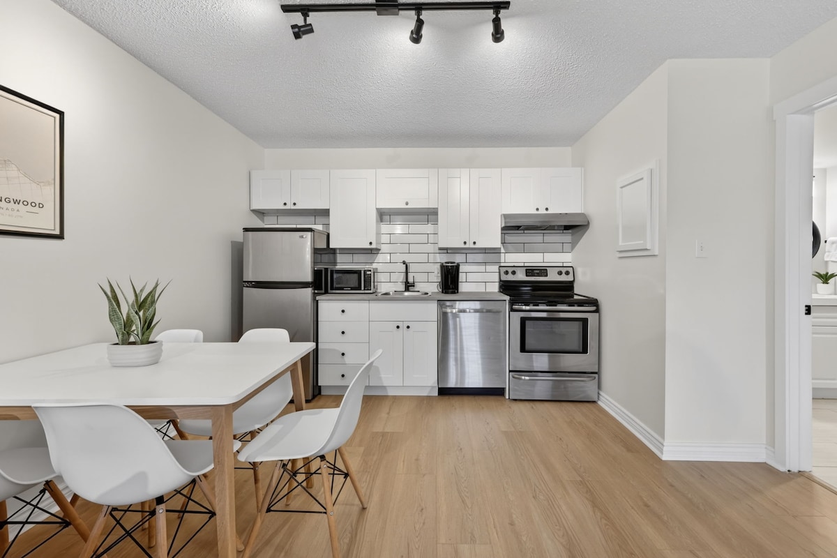 Bine ai venit în unitatea noastră complet autorizată, renovată, situată pe o stradă rezidențială liniștită. Această unitate luminoasă, 100% PRIVATĂ, situată la subsol, oferă amestecul perfect de confort și comoditate. Decorat elegant, combină stilul contemporan cu confortul cald al locuinței. Te poți aștepta la un refugiu liniștit, unde te poți relaxa și destinde, dar rămâi totuși aproape de acțiune. Suntem la 5 minute cu mașina de centrul orașului și la 10 minute cu mașina de Blue Mountain.
