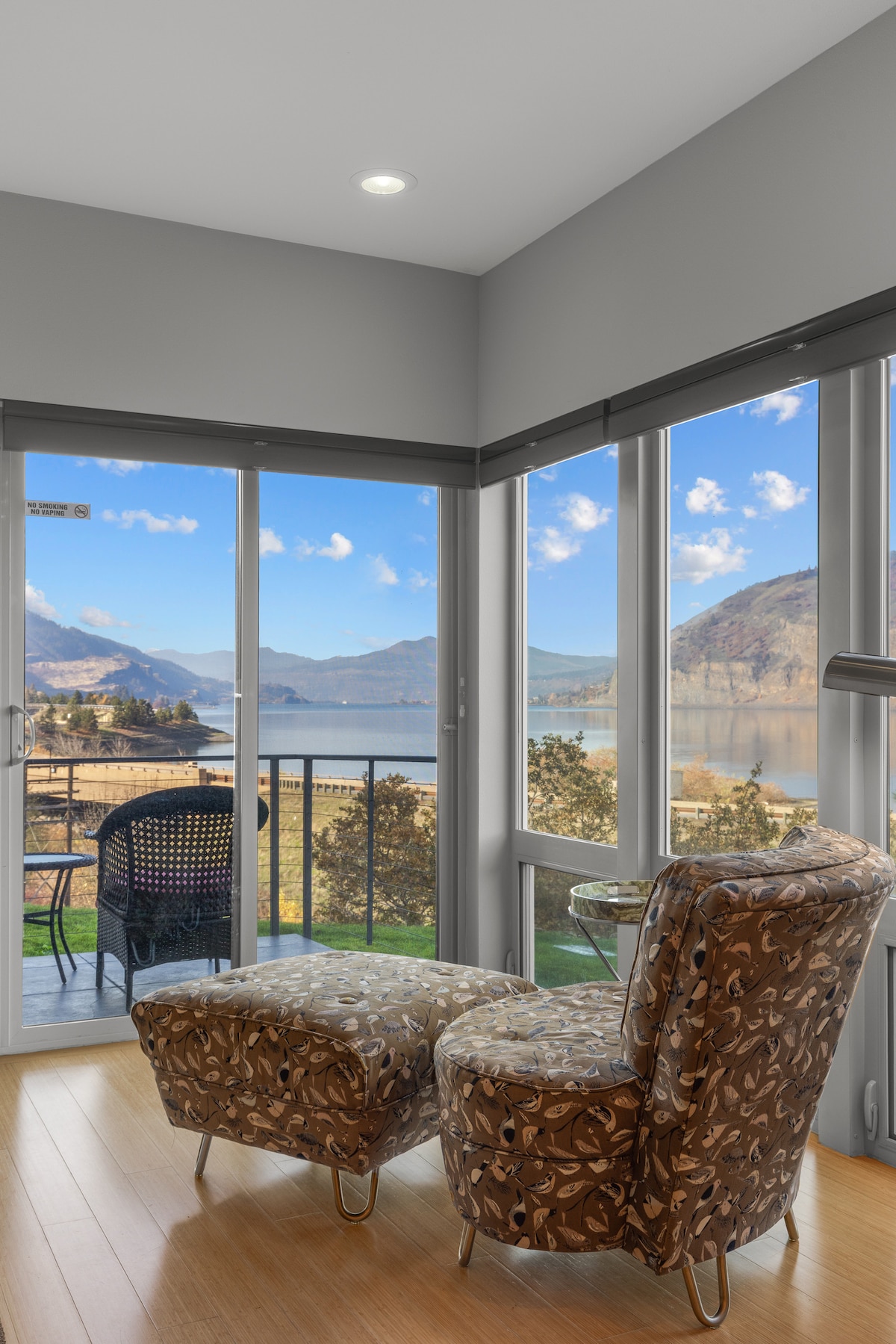 Welcome to Stay Gorgeously! At this bright, modern Mosier condo you’ll enjoy sweeping views of the Columbia River Gorge. The window-lined living room includes a full-size pullout couch, and the cozy den doubles as an office with a desk and sofa. Upstairs, the primary bedroom opens to a private balcony. Enjoy a fully stocked kitchen, fast WiFi, central A/C, and in-unit laundry. Located just minutes from Hood River, scenic trails, wineries, and all the charm of the Gorge.
