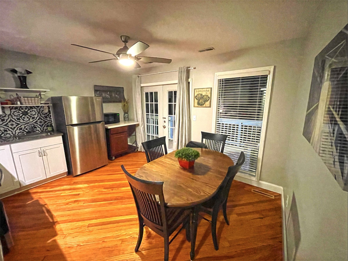 „Colțul nostru confortabil” este o locuință cu 1,5 etaje, complet mobilată, într-un cartier fermecător din Marietta, OH, care oferă 3 dormitoare și 1,5 băi. Podelele din lemn de esență tare și elementele încorporate sunt doar câteva dintre detaliile fermecătoare pe care le vei găsi aici. Bucătărie complet aprovizionată cu aragaz, frigider, cuptor cu microunde, vase, ustensile, ustensile, oale/tigăi, prăjitor de pâine și oală de cafea Keurig. Verandă acoperită pentru a te bucura de cafeaua de dimineață și de curtea mare privată, umbrită.
