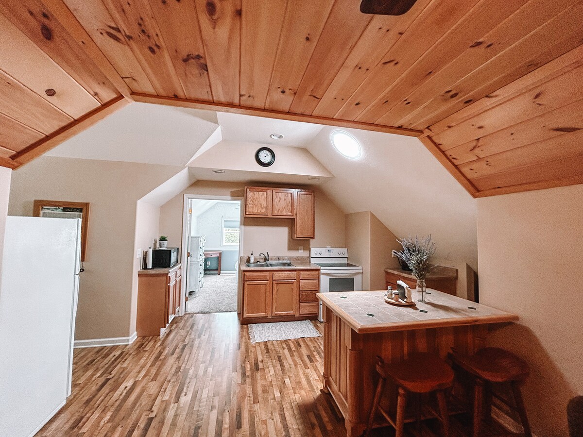 La etaj, loft în stil studio, situat la câteva minute de centrul istoric al orașului Jonesborough. Aproximativ 500 mp, acest spațiu confortabil oferă tot luxul de acasă, cu o bucătărie completă, baie completă și intrare privată cu acces prin cod digital. Situat central, poți fi oriunde de la Asheville, NC până la frumoșii munți Smokey în puțin peste o oră. Am creat acest spațiu ca o escapadă pentru cupluri, așa că solicităm ca copiii și animalele de companie să fie lăsate acasă. Fără acces pentru persoane cu dizabilități, deoarece acesta este deasupra mansardei garajului.